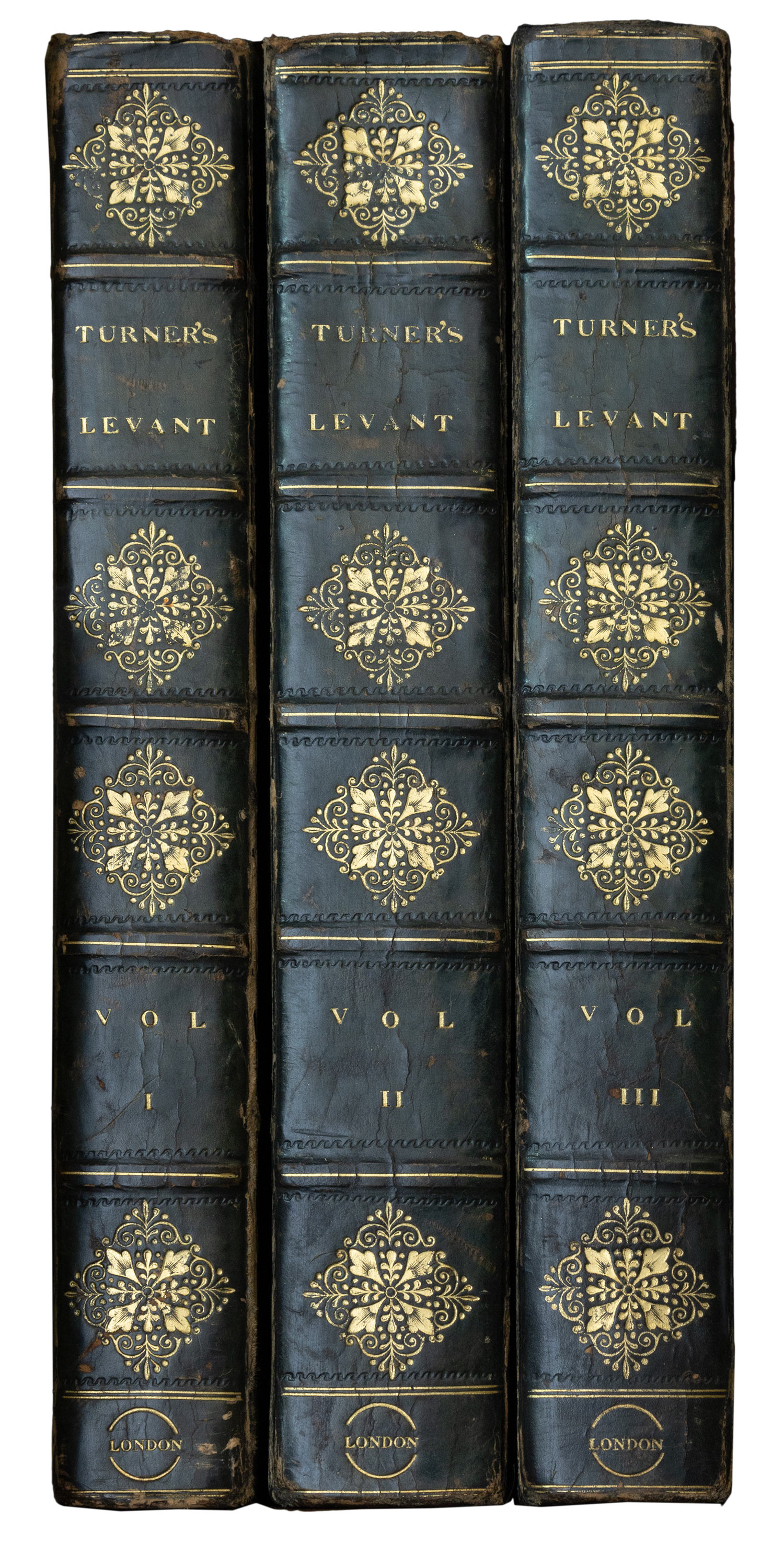 Τιμή εκτίμησης: € 1.200 - 1.600ΠΡΩΤΗ ΕΚΔΟΣΗ. 3 τόμοι, 8ο (214 x 131 mm.), xxiii + 480, vi + 608 και vi + 546 σ. (λείπουν οι ψευδότιτλοι, οξείδωση διαφόρων βαθμών στους περισσότερους πίνακες και σε λίγα φύλλα κειμένου). Με 2 αναδιπλούμενους χάρτες, ένα αναδιπλούμενο πανομοιότυπο συστατικής επιστολής και 21 χαλκογραφίες εκτός κειμένου, ανάμεσά τους 5 ακουατίντες (οι 2 αναδιπλούμενες) και μία οξυγραφία