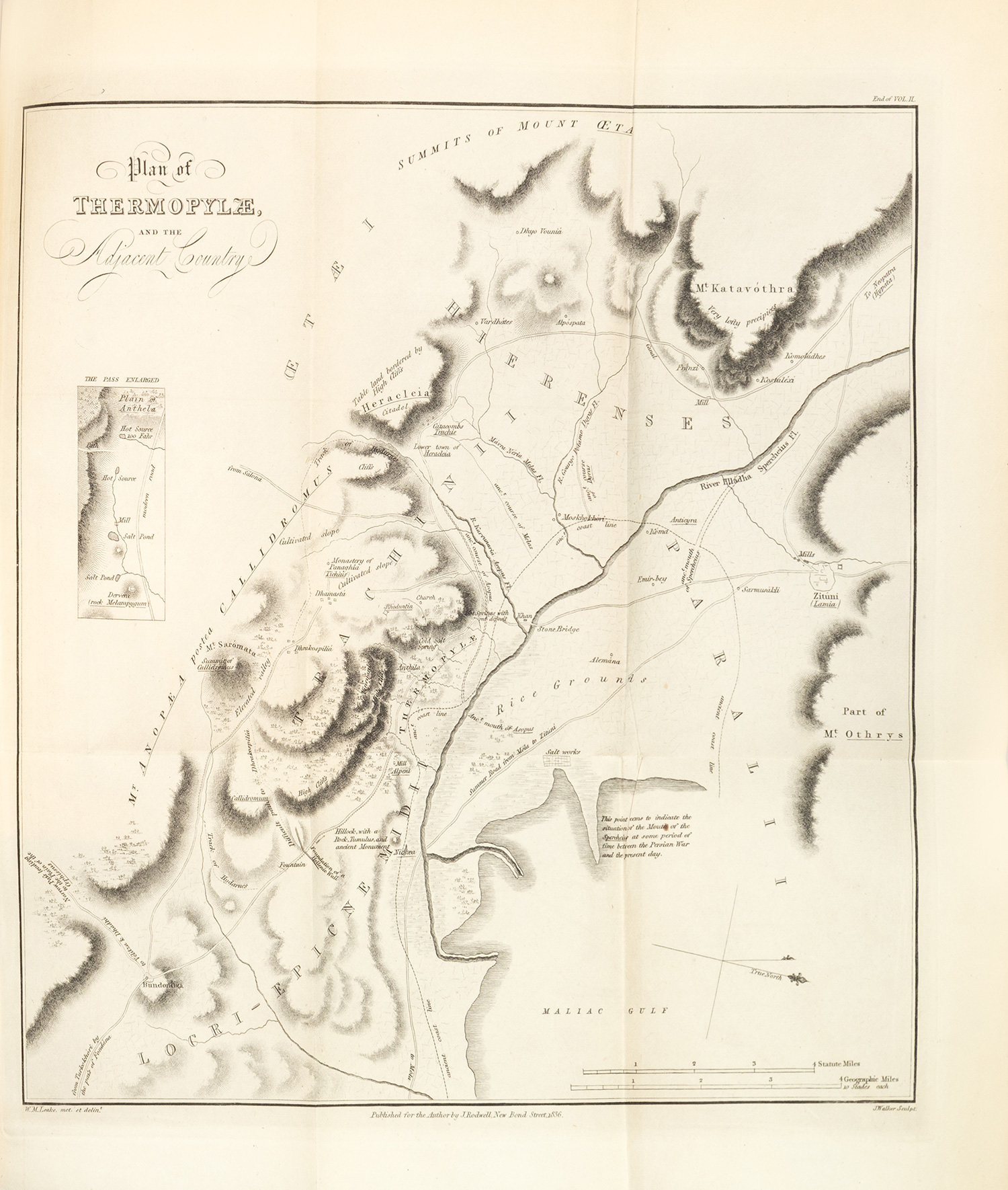 Τιμή εκτίμησης: € 1.800 - 2.200ΠΡΩΤΗ ΕΚΔΟΣΗ. 4 τόμοι, 8ο (223 x 144 mm.), xii + 527, vii + 643, vii + 578 και vi + 588 + 38 σ. (λυμένο ένα φύλλο στον Α´ τόμο: σ. xi-xii, τέσσερα μικρά σχισίματα σε έναν χάρτη). Με 4 χαλκόγραφους χάρτες (3 αναδιπλούμενοι), 6 τοπογραφικά (5 αναδιπλούμενα) και 44 λιθόγραφους πίνακες με επιγραφές. Μεταγενέστερο πανί (ελεύθερο το πάνω κάλυμμα του τόμου Γ´ , σχισίματα στις ενώσεις των τόμων Α´ , Β´ και Γ´ , μικρές φθορές, εν μέρει άκοποι οι τόμοι Α´ και Δ´ ). Blackmer 975, Atabey 692, Weber, I, 233. (4)
