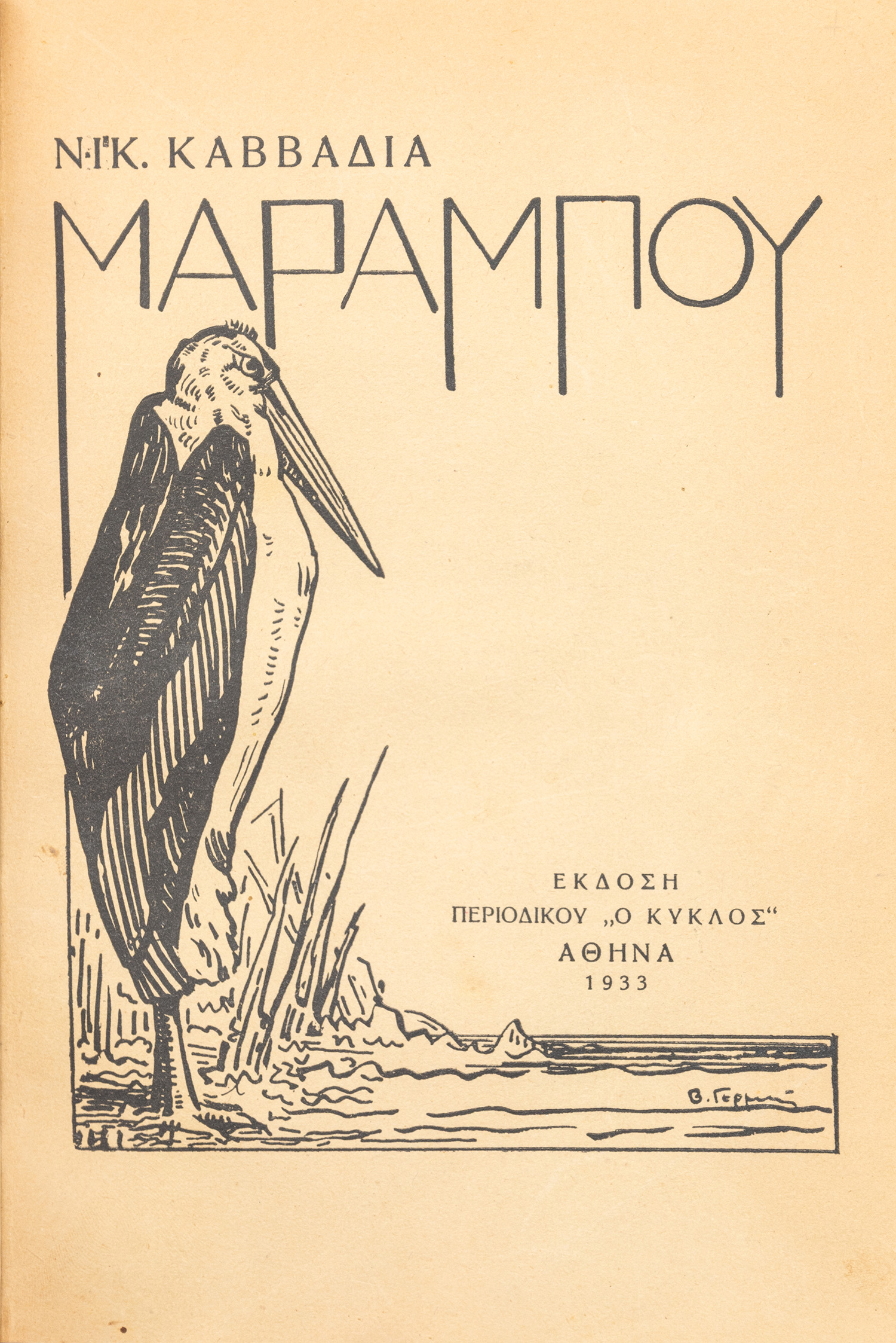 Τιμή εκτίμησης: € 400 - 600ΠΡΩΤΗ ΕΚΔΟΣΗ, περιορισμένη σε 245 αντίτυπα. 59 σ. (κτητορική σημείωση στο λευκό φύλλο πριν τον ψευδότιτλο). Εικονογραφημένο πανί (της Βιβλιοφιλικής Γωνιάς, έχει διατηρηθεί το πάνω αρχικό εξώφυλλο σε σχέδιο του Β. Γερμενή).
