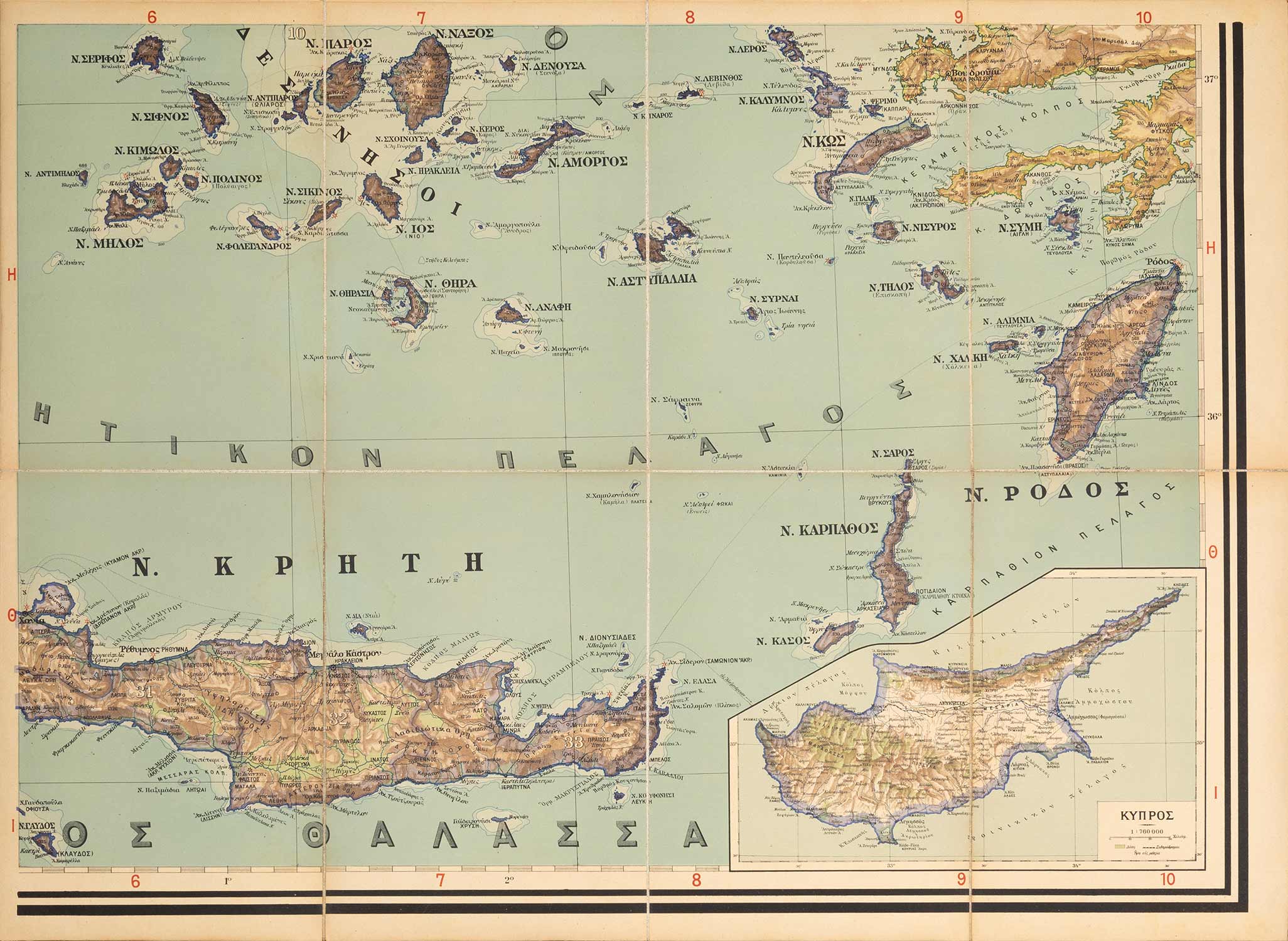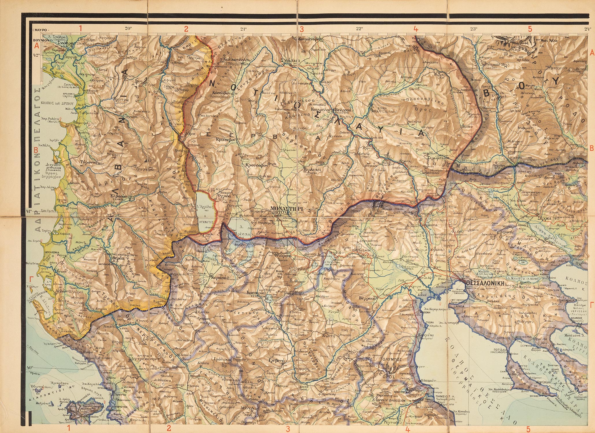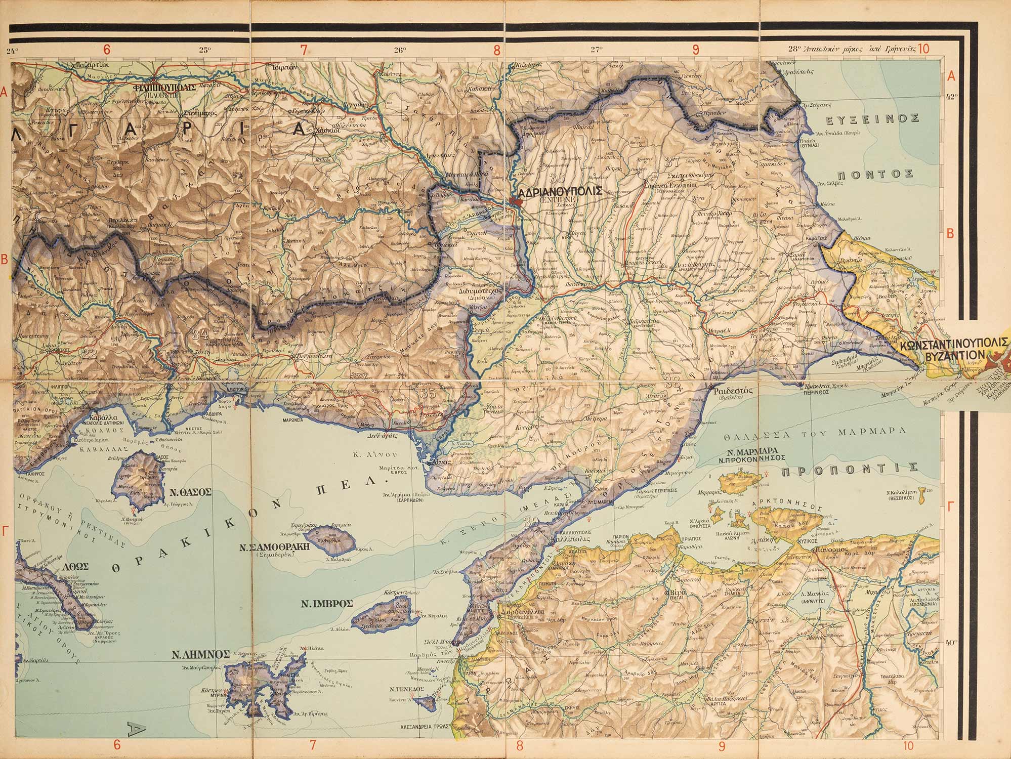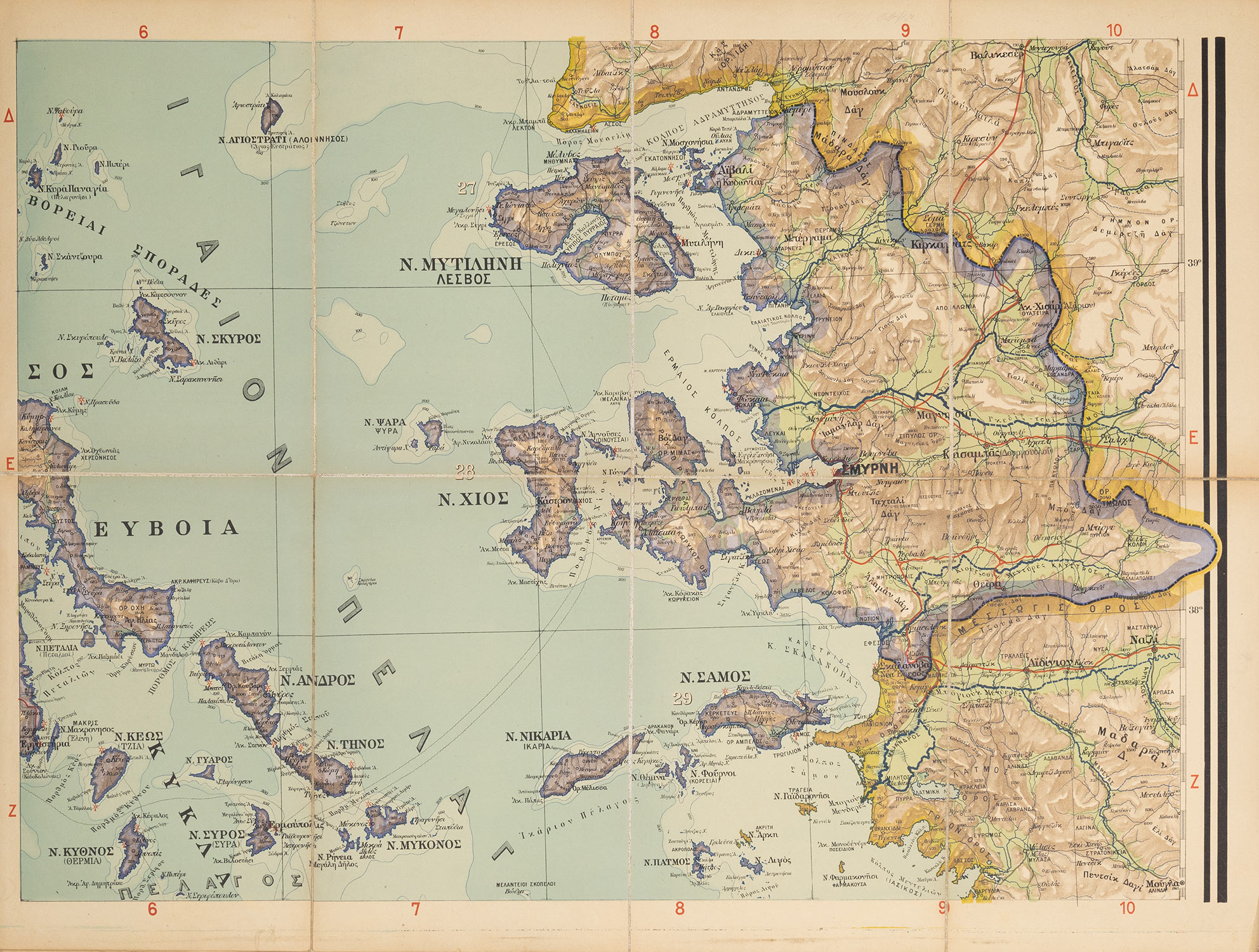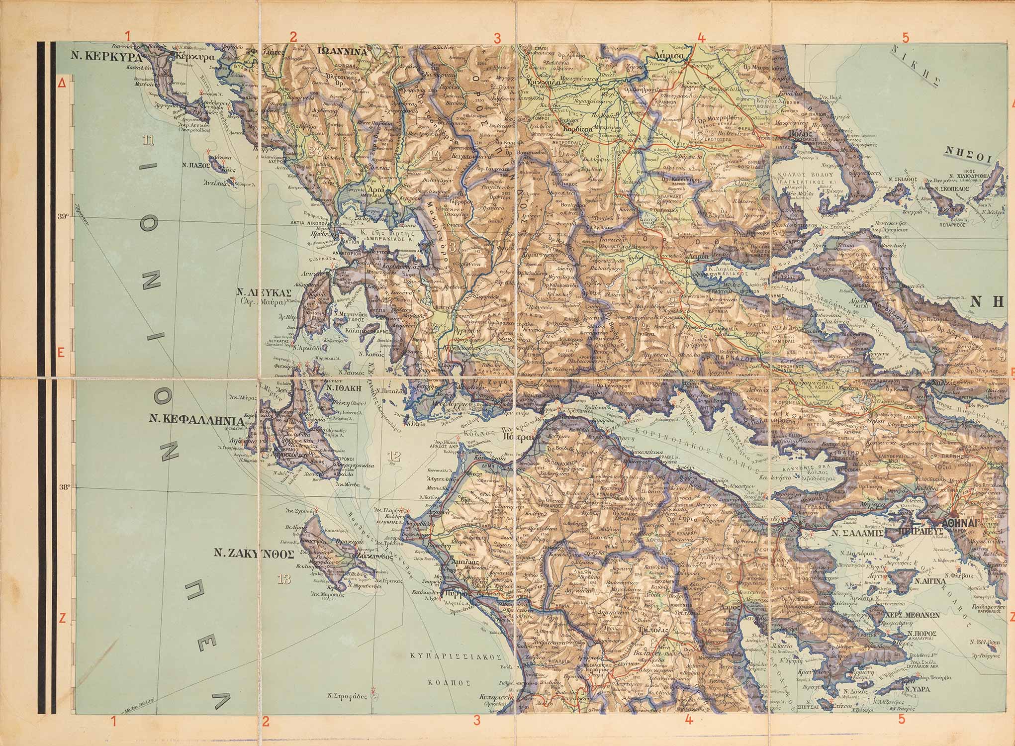 Χρωμολιθόγραφος χάρτης σε 6 φύλλα φοδραρισμένα με πανί, το καθένα 613 x 850 mm.