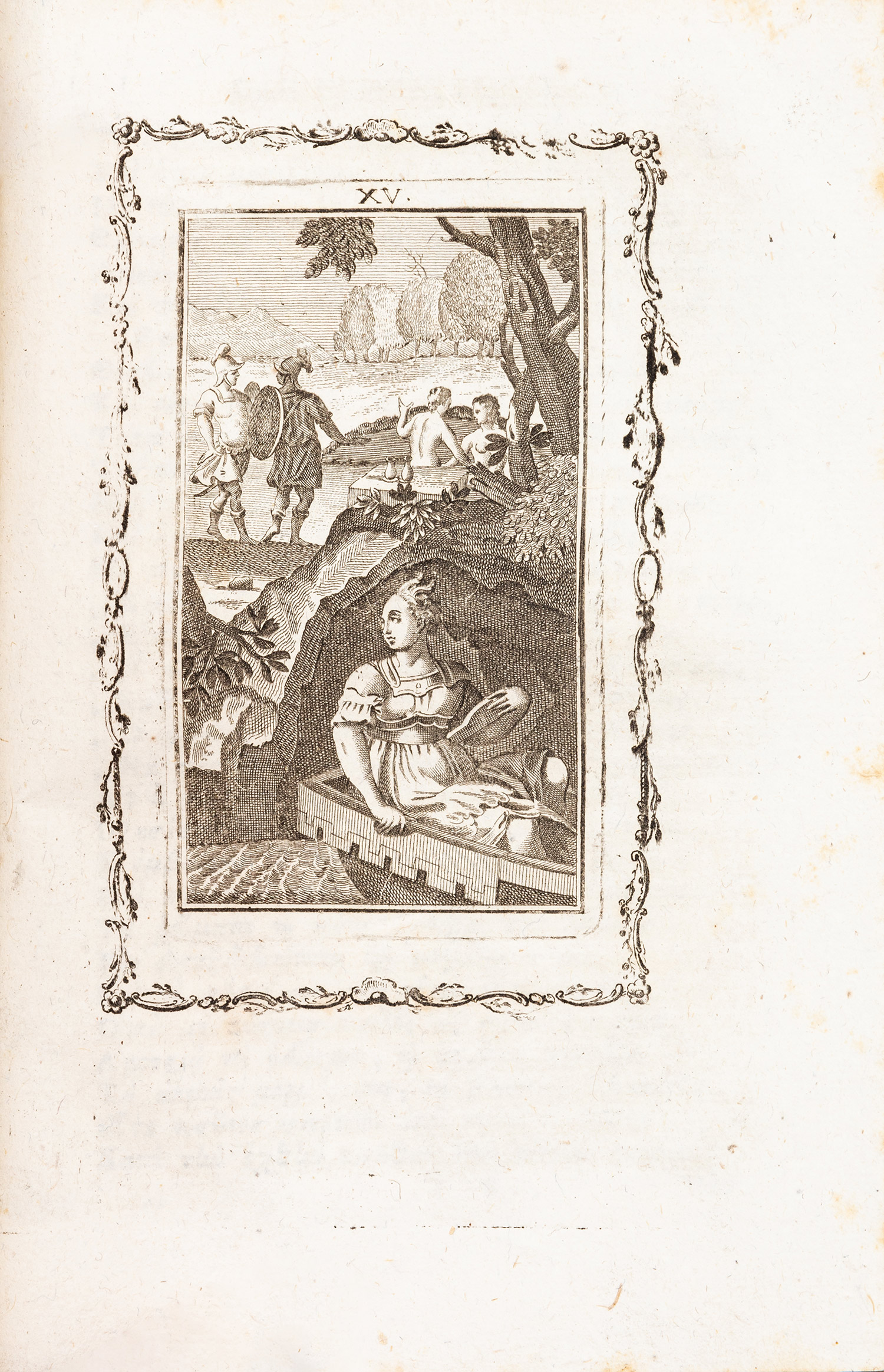 Τιμή εκτίμησης: € 400 - 6008ο, 24 + 476 σ. (οξείδωση, κομμένο μικρό τμήμα από το εξωτερικό περιθώριο ενός φύλλου: σ. 69-70). Η μορφή με την αφιέρωση στον Ναπολέοντα μεταξύ του πρώτου και του δεύτερου φύλλου (ελληνικό κείμενο και γαλλική μετάφραση σε αντικριστές σελίδες, [10 σ.]), με 20 χαλκογραφίες εκτός κειμένου. Αρχικά σταμπωτά χαρτόνια (μικρές φθορές, διάστικτες οι ακμές). Ηλιού 1807.27, Legrand & Pernot, 760, Κασίνης, I, 43.