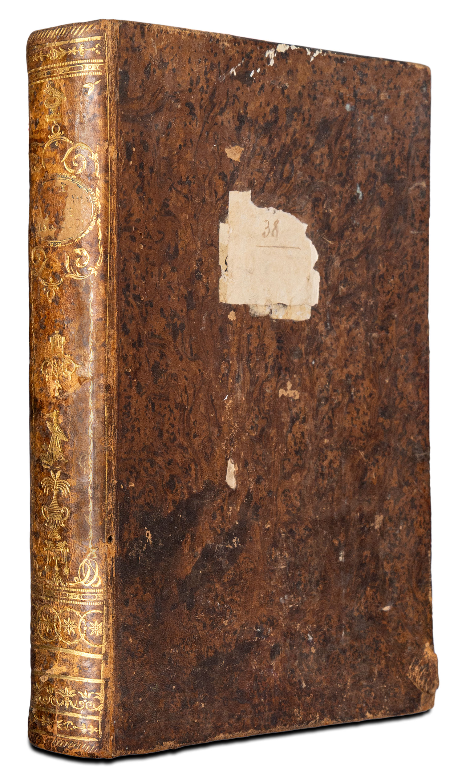 Τιμή εκτίμησης: € 300 - 4004ο, VI + 432 σ. (λείπει το τελευταίο φύλλο (χ. α.): «Παροράματα», λίγο οξειδωμένο αντίτυπο, ομοιόμορφη οξείδωση στα τρία πρώτα τεύχη, λεκές από νερό στο εσωτερικό περιθώριο των πρώτων φύλλων). Αντίτυπο σε γαλάζιο χαρτί, με τον τίτλο στη δεύτερη μορφή του, 20 αναδιπλούμενοι χαλκόγραφοι πίνακες στο τέλος. Δέρμα της εποχής της έκδοσης (μικρές φθορές, χρυσή διακόσμηση στη ράχη). Ηλιού 1805.93, Legrand & Pernot, 731, πρβ. Λαγανάς 544.