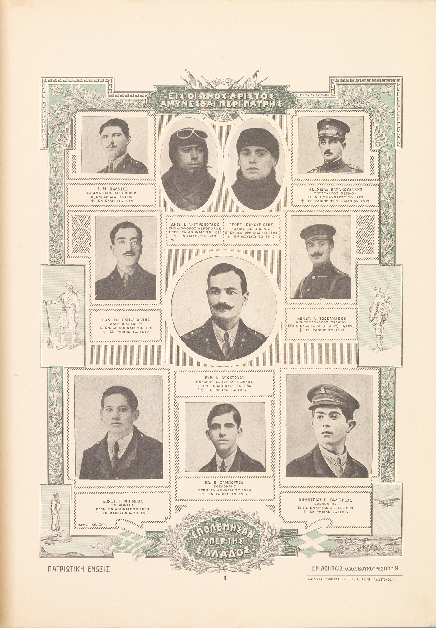 Τιμή εκτίμησης: € 150 - 200365 x 270 mm., 19 φ. πιασμένα με κορδέλα στην αριστερή τους πλευρά (οι πίσω όψεις λευκές). Με πολυάριθμα πορτραίτα πεσόντων σε χρωμολιθόγραφο διακοσμητικό πλαίσιο. Αρχικά χρωμολιθόγραφα εξώφυλλα. • ΣΠΑΝΙΟ.
