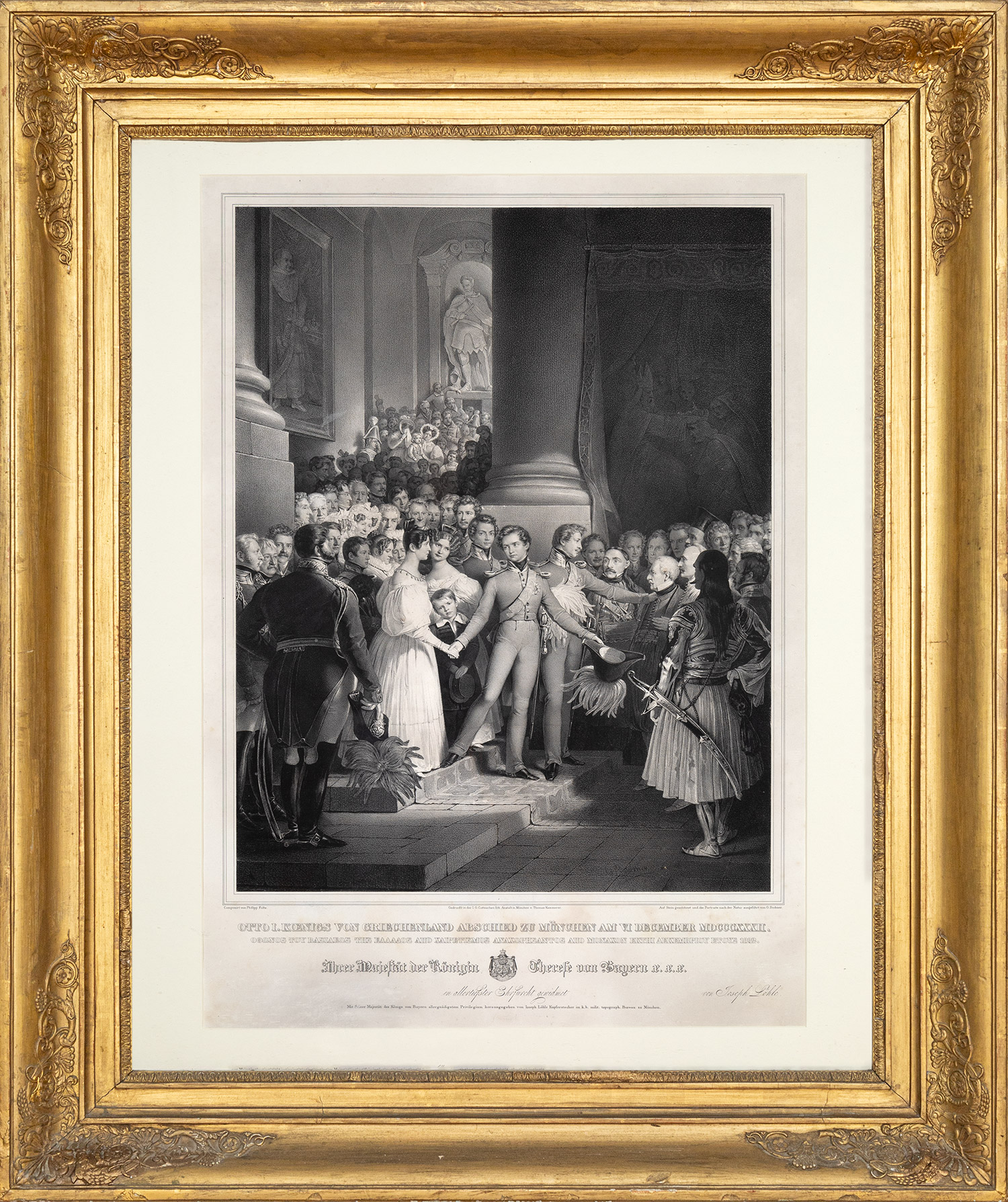 Otto I. Koenigs von Griechenland Abschied zu München, am VI December MDCCCXXXII. Ὄθωνος τοῦ Βασιλέως τῆς Ἑλλάδος ἀποχαιρετισμός, ἀναχωρήσαντος ἀπό Μόναχον ἕκτῃ Δεκεμβρίου ἔτους 1932.