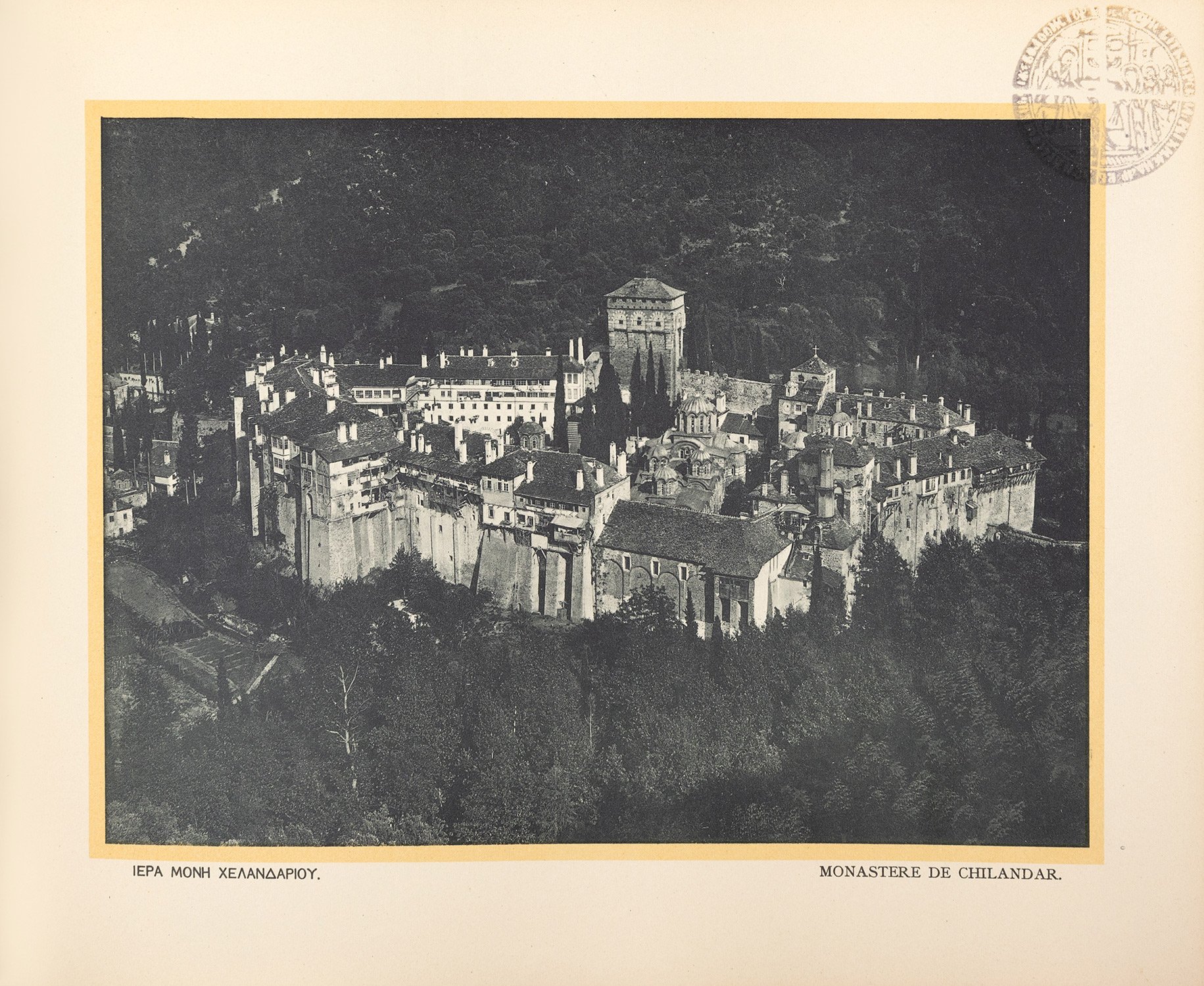 Τιμή εκτίμησης: € 150 - 200πλάγιο 4ο, 240 x 300 mm. Τίτλος, έγκριση της Κοινότητας, ιστορικό υπόμνημα και επεξηγηματικά κείμενα στα ελληνικά και γαλλικά, ένας χάρτης και 52 φωτοτυπικές αναπαραγωγές φωτογραφιών σε 39 φύλλα, αντίτυπο με τη σφραγίδα της Κοινότητας και χειρόγραφη σημείωση στα ρωσικά. Αρχικό δέρμα (ο τίτλος με χρυσά γράμματα στα ελληνικά και γαλλικά πάνω και κάτω αντίστοιχα από παράσταση του Όρους, χρυσωμένες οι ακμές).