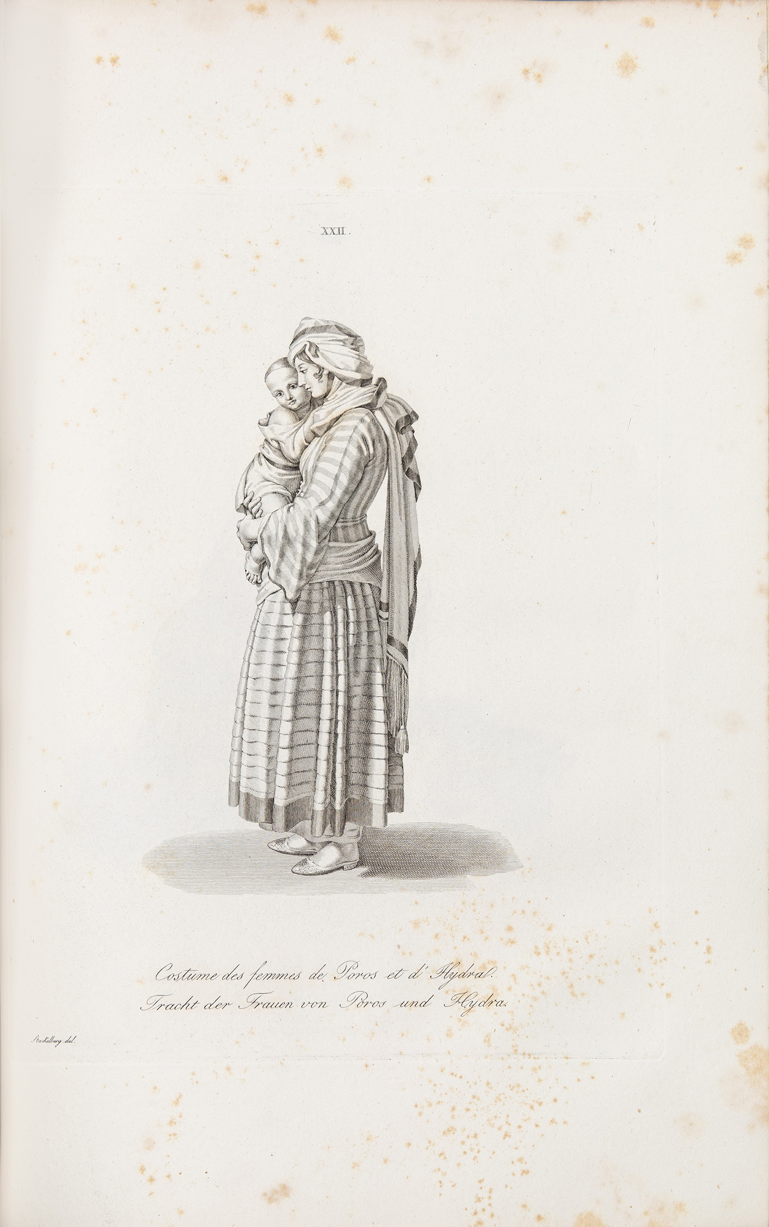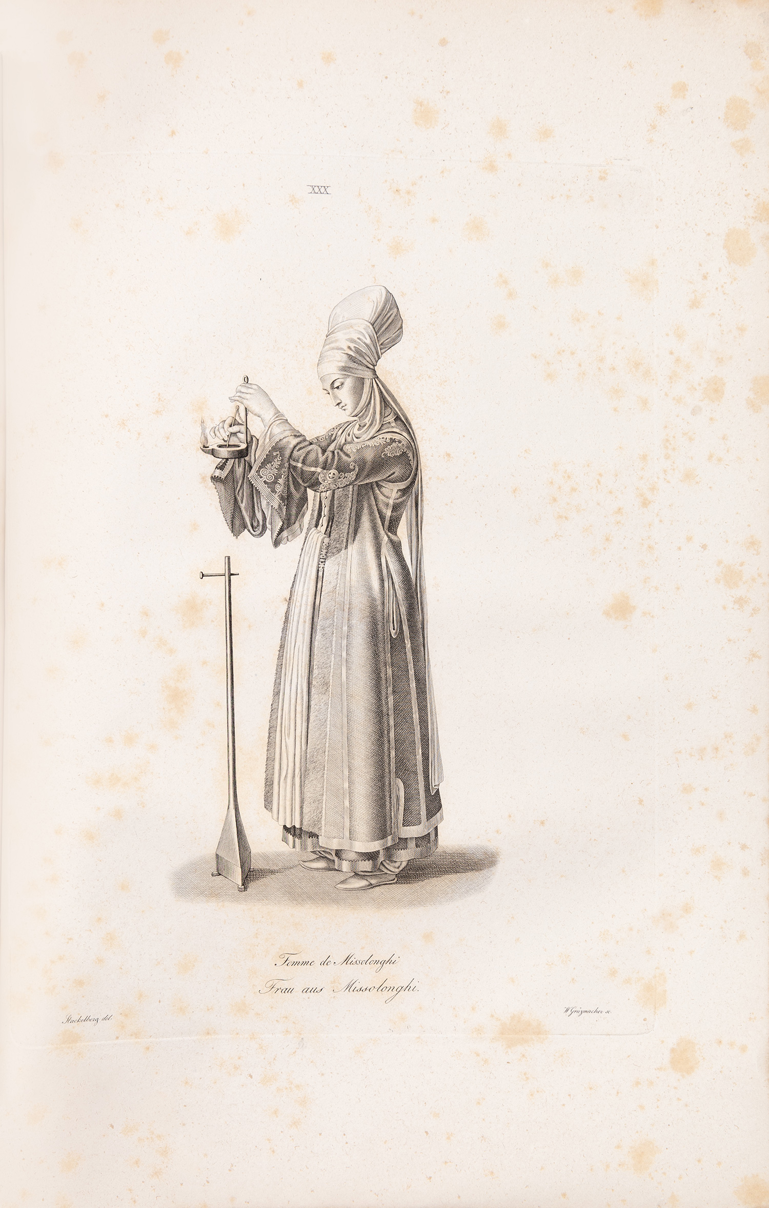 Τιμή εκτίμησης: € 2.000 - 3.000folio (378 x 254 mm.), 28 σ. (οξείδωση, κυρίως στις χαλκογραφίες). Πρώτη έκδοση με επεξηγηματικά κείμενα (στα γερμανικά), χαλκόγραφη προμετωπίδα και 30 χαλκογραφίες, οι λεζάντες στα γαλλικά και γερμανικά. Μεταγενέστερα απλά εξώφυλλα (μικρά σχισίματα στην κορυφή και τη βάση της ράχης). Blackmer 1591, Colas 2790.
