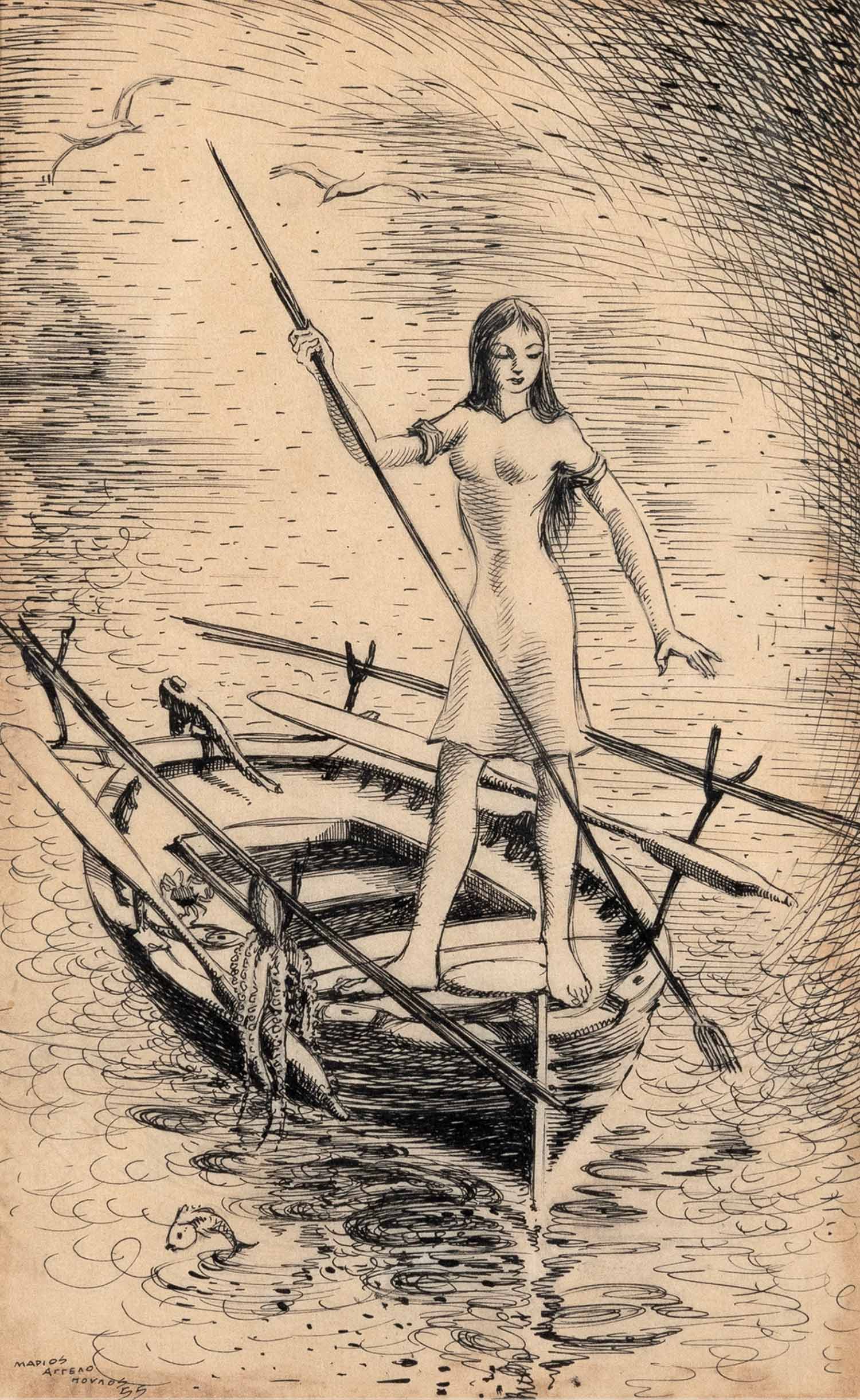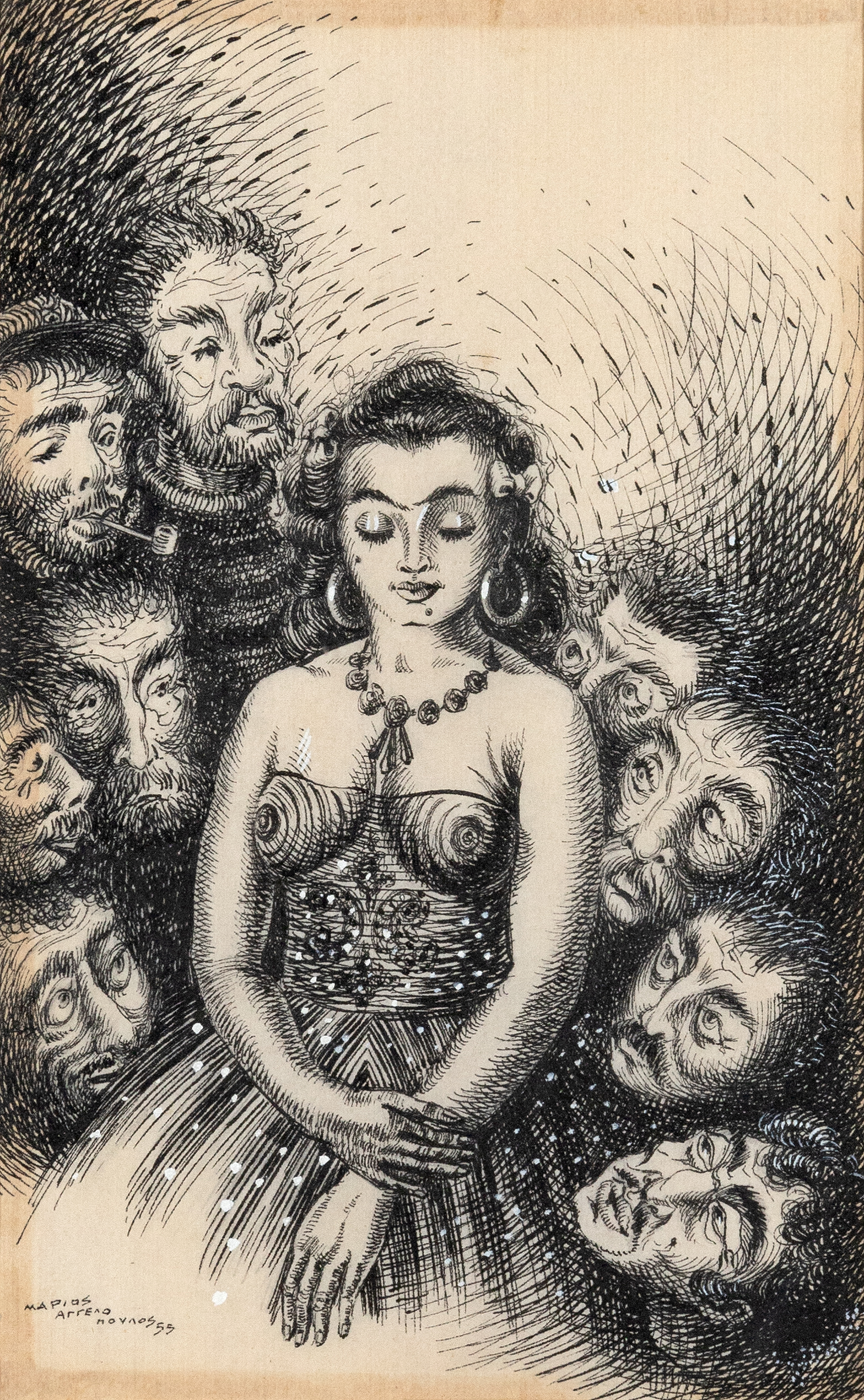 Ἑπτά σχέδια γιά τήν εἰκονογράφηση τοῦ ἔργου «Παναγιά ἡ Γοργόνα» τοῦ Στράτη Μυριβήλη.