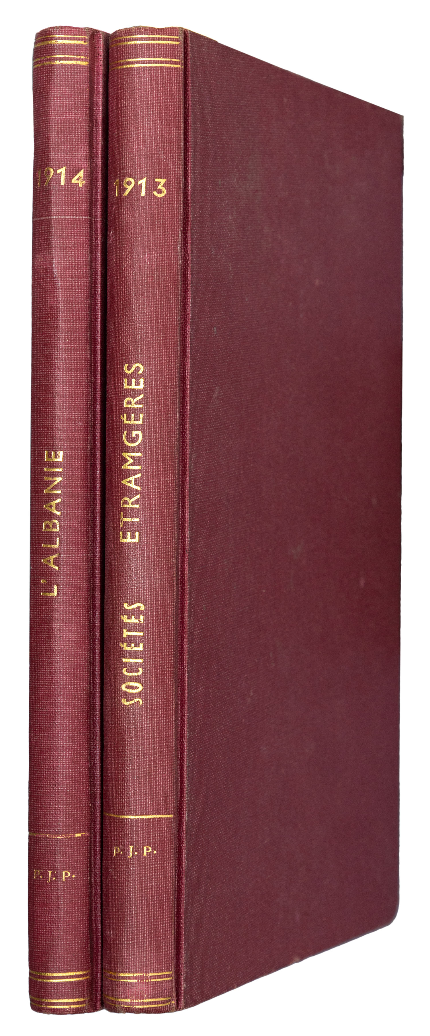 Τιμή εκτίμησης: € 100 - 150ΠΡΩΤΗ ΕΚΔΟΣΗ. 8ο, XI + 207 σ. Αντίτυπο υπογεγραμμένο από τον συγγραφέα. Πανί (τα αρχικά «P.J.P» στη βάση της ράχης). [μαζί, του ιδίου:] L’Albanie et la réunion d’ambassadeurs à Londres (Étude politique et économique). Παρίσι, A. Rousseau, 1914. • ΠΡΩΤΗ ΕΚΔΟΣΗ. 8ο, 153 σ. Αντίτυπο υπογεγραμμένο από τον συγγραφέα. Πανί (τα αρχικά «P.J.P» στη βάση της ράχης). (2)
