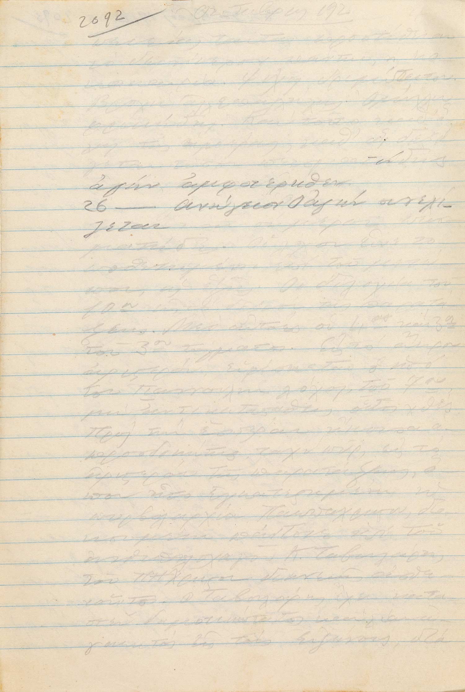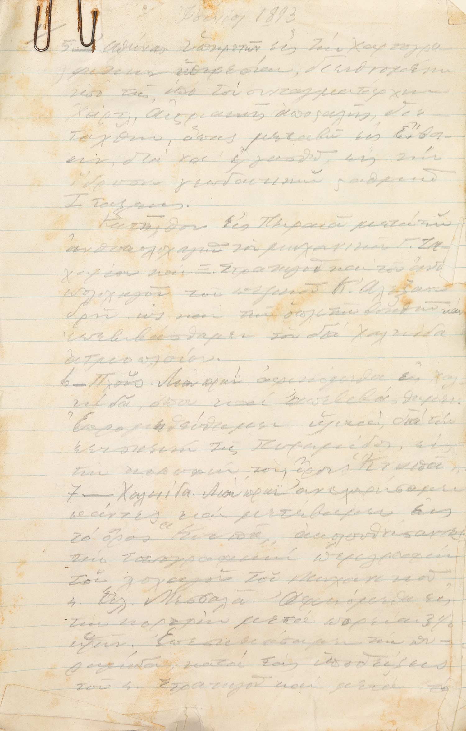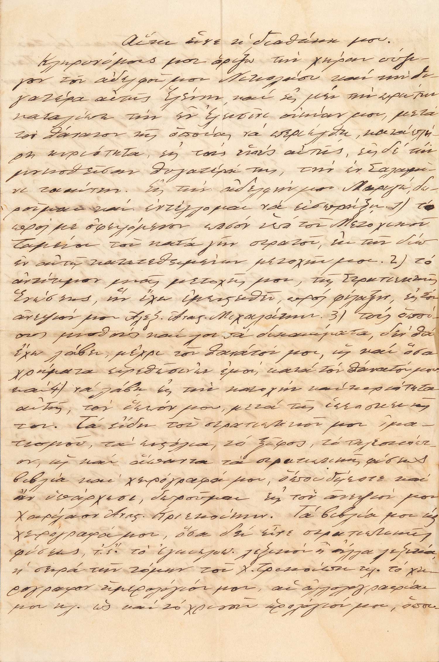 Τιμή εκτίμησης: € 12.000 - 16.000Περιλαμβάνονται αναλυτικά: (α) Εκτενέστατο αυτόγραφο ημερολόγιο των περιόδων: Ιούνιος – Οκτώβριος 1893, Ιούλιος – Οκτώβριος 1894 και Μάρτιος 1895 – Νοέμβριος 1916. • 2.549 σελίδες γραμμένες με μολύβι σε κόλλες αναφοράς, αριθμημένες στην πάνω αριστερή γωνία. (β) Φάκελος με αυτόγραφη σημείωση και τη μονογραφή του («Διάφορα σημειώματα / κατά τάς μάχας ἀποσταλέντα / ΑΚ / 1912-1913») που περιλαμβάνει 175 χειρόγραφα και έγγραφα (επιστολές, σημειώματα, αναφορές κινήσεων και συμβάντων, τηλεγραφήματα κ.ά.) χωρισμένα από τον ίδιο σε ενότητες ανάλογα με τον αποστολέα, καθώς και δύο αυτόγραφα σημειωματάρια, στα οποία ο Κοντούλης έχει αντιγράψει σημειώματα προς και από αυτόν. (γ) Πανόδετος τόμος με δακτυλογραφημένα έγγραφα σχετικά με τον πόλεμο 1912-1913, που περιλαμβάνει τις εκθέσεις του Κοντούλη για τις πολεμικές επιχειρήσεις του Α´ Μικτού Αποσπάσματος, του 3ου και του 7ου Τάγματος Ευζώνων, τις υποβληθείσες από αυτόν προτάσεις για την αμοιβή των αξιωματικών, συγχαρητήριες επιστολές διαφόρων προσώπων προς τον Κοντούλη για τη δράση του στον εν λόγω πόλεμο και την αλληλογραφία του Κοντούλη με τον ανθυπολοχαγό πεζικού Αβράμπο. (δ) Πανόδετος τόμος με δακτυλογραφημένα αντίγραφα της αλληλογραφίας του Κοντούλη με τους Ισμαήλ Κεμάλ Βλώρα, Τζαφέρ εφένδη Μπρεστάνη, Ναούμ Βοΐλα, στρατηγό Αλέξανδρο Σούτζο κ.ά. (ε) Αυτόγραφο τεύχος με την αλληλογραφία του Κοντούλη με τον Ισμαήλ Κεμάλ Βλώρα, το οποίο μεταγράφηκε στον προαναφερθέντα δακτυλόγραφο τόμο με την αλληλογραφία του Κοντούλη. (στ) Αυτόγραφη διαθήκη με την υπογραφή του («Ἀ. Κοντούλης / Ὑποστράτηγος») συνταχθείσα στις 18 Ιουλίου 1918 στα Χανιά (στην οποία μεταξύ άλλων αναφέρεται και το αυτόγραφο ημερολόγιο, που συμπεριλαμβάνεται στον παρόντα λαχνό), 2 σ. (ζ) Το διαβατήριο του Α. Κοντούλη με καταχωρήσεις από τον Ιούλιο έως τον Οκτώβριο του 1932, όταν είναι πλέον αντιστράτηγος εν αποστρατεία. (η) Αποδελτίωση δημοσιευμάτων («Ὅσα ἐδημοσίευσεν ὁ Στρατηγός Ἀλέξανδρος Κοντούλης καί ὅσα ἐδημοσιεύθησαν περί αὐτοῦ») των περιόδων: 22 Αυγούστου 1891 – 18 Απριλίου 1921, 4 Μαρτίου 1921 – 28 Δεκεμβρίου 1924 και 4 Ιουλίου 1925 – 13 Φεβρουαρίου 1928. • 3 δακτυλογραφημένοι τόμοι, 400, (401)-800 και 333 σ., πανί (η ένδειξη: «Στρατηγοῦ Κοντούλη Δημοσιογραφία» στη ράχη). • ΕΞΑΙΡΕΤΙΚΑ ΣΗΜΑΝΤΙΚΟ ΑΡΧΕΙΟ ΓΙΑ ΤΗ ΔΡΑΣΗ ΤΟΥ ΑΛΕΞΑΝΔΡΟΥ ΚΟΝΤΟΥΛΗ. Το εκτενές και αναλυτικό ημερολόγιό του, χωρισμένο ανά μήνα και κατόπιν ανά ημέρα, γραμμένο με «ευλαβική» αφοσίωση και συνέπεια (σημειώνει ακόμη και τις ημέρες χωρίς ιδιαίτερη δράση με την ένδειξη «οὐδέν» ή «οὐδέν σπουδαῖον»), εκτός από καταγραφές προσωπικού περιεχομένου, καλύπτει περιόδους ιδιαιτέρως σημαντικές για τη στρατιωτική του σταδιοδρομία και την ιστορία της Ελλάδας γενικότερα, ξεκινώντας από τον Ελληνοτουρκικό Πόλεμο του 1897, στον οποίο έλαβε μέρος ως Υπολοχαγός του 4ου Τάγματος Ευζώνων υπό τη διοίκηση του Κωνσταντίνου Σμολένσκυ. Καλύπτει στη συνέχεια την περίοδο της εμπλοκής του στον Μακεδονικό Αγώνα (1904-1908) και τη δράση του στον Α´ Βαλκανικό Πόλεμο και το ηπειρωτικό μέτωπο (1912-1913), όπου με το βαθμό του Αντισυνταγματάρχη διοικεί με νικηφόρα αποτελέσματα αρχικά το 3ο Τάγμα Ευζώνων κι έπειτα το Α´ Μικτό Απόσπασμα, και επεκτείνεται τέλος στο διάστημα από τον Μάιο 1913 έως τον Φεβρουάριο 1914, οπότε του ανατίθενται τα καθήκοντα του Στρατιωτικού και Πολιτικού Διοικητού Κορυτσάς. Ιδιαίτερη ιστορική σημα