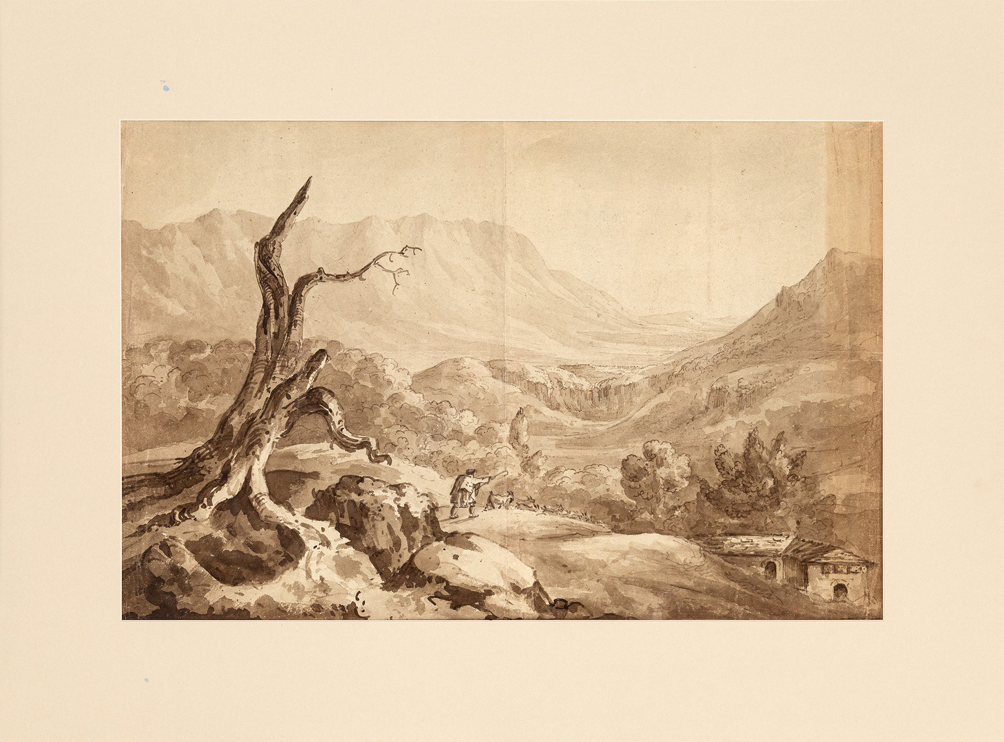 Αραιωμένο μελάνι σε χαρτί, 435 x 650 mm. Τίτλος στην πίσω όψη. Σε πασπαρτού.