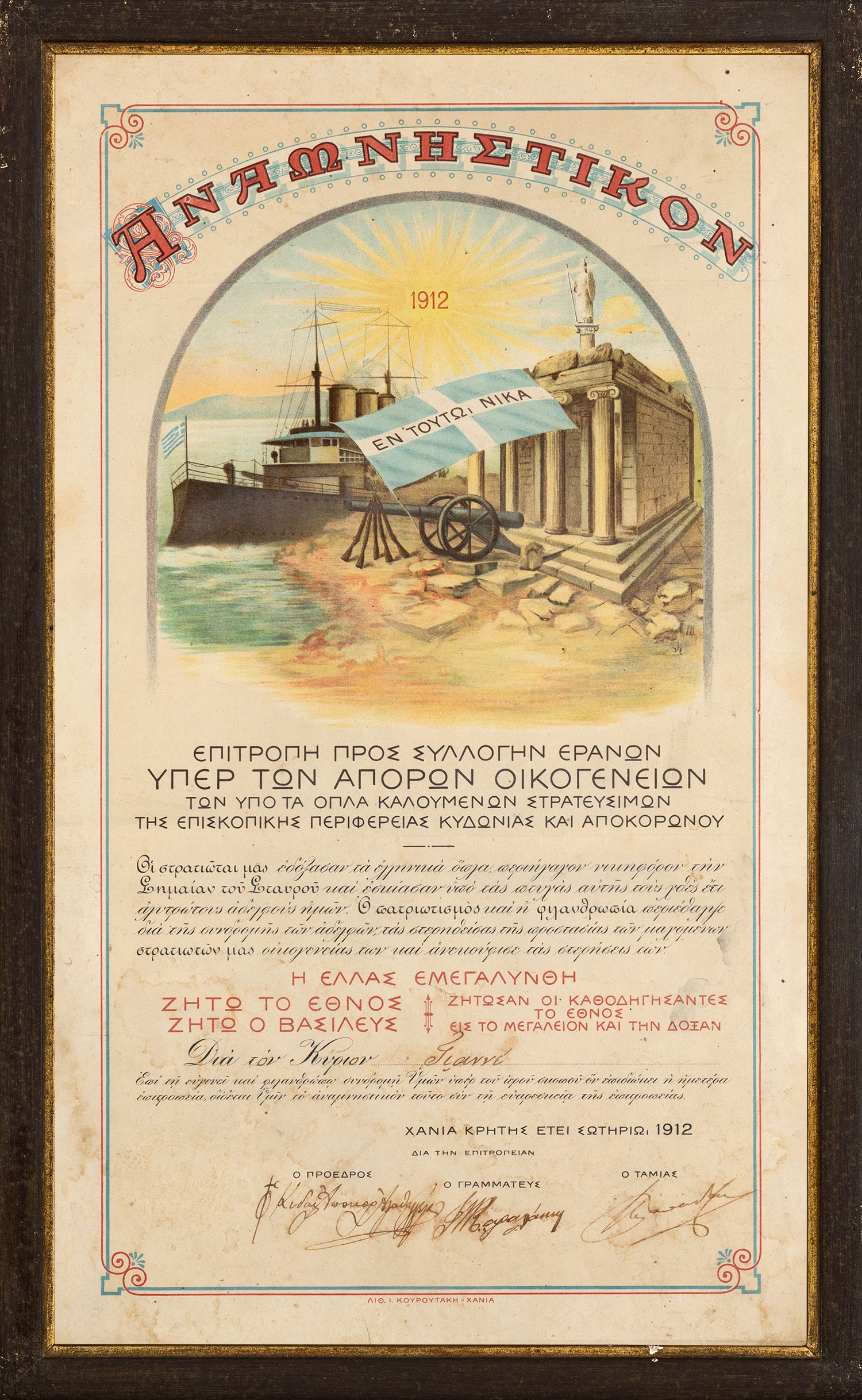Ἀναμνηστικόν. Ἐπιτροπή πρός συλλογήν ἐράνων ὑπέρ τῶν ἀπόρων οἰκογενειῶν τῶν ὑπό τά ὅπλα καλουμένων στρατευσίμων τῆς Ἐπισκοπικῆς περιφερείας Κυδωνίας καί Ἀποκορώνου.