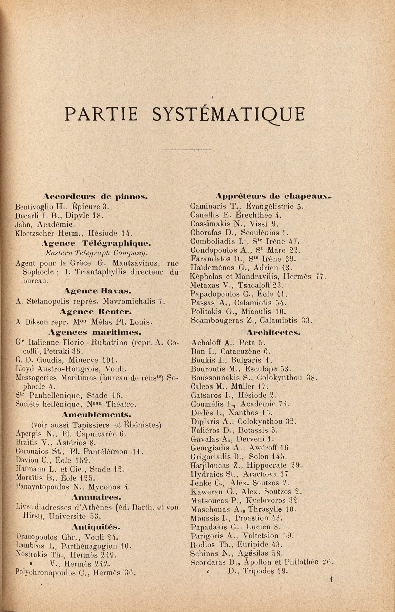 Ὁδηγός τῆς πόλεως τῶν Ἀθηνῶν, ἤτοι βιβλίον τῶν διευθύνσεων. Livre d’adresses de la ville d’Athènes.