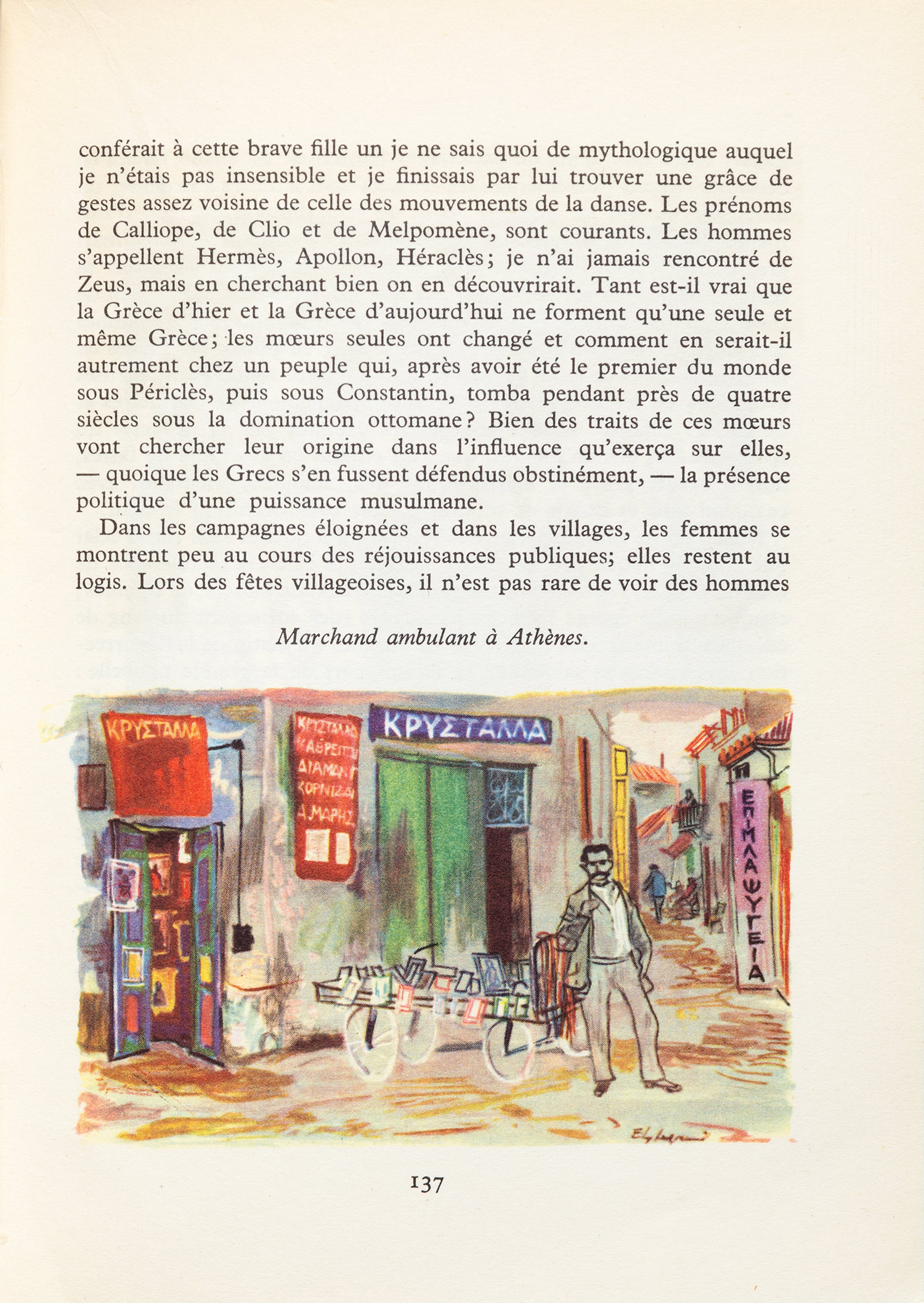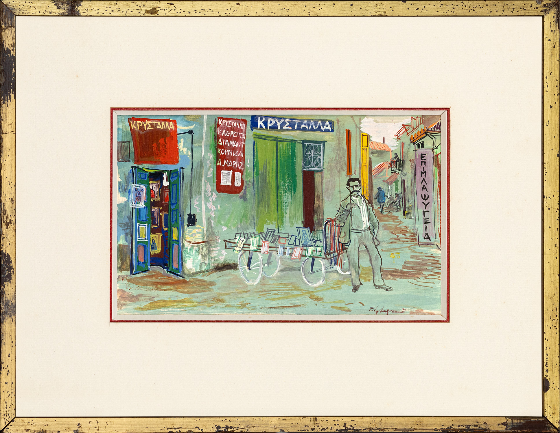 Τιμή εκτίμησης: € 600 - 800Γκουάς σε χαρτί, 130 x 205 mm. Υπογεγραμμένο κάτω δεξιά: «Edy Legrand». Σε κορνίζα. Μαζί, αντίτυπο του τουριστικού οδηγού La Grèce (Le monde en couleurs), Παρίσι, ODÉ, 1953 (εικονίζεται στη σ. 137). (2)