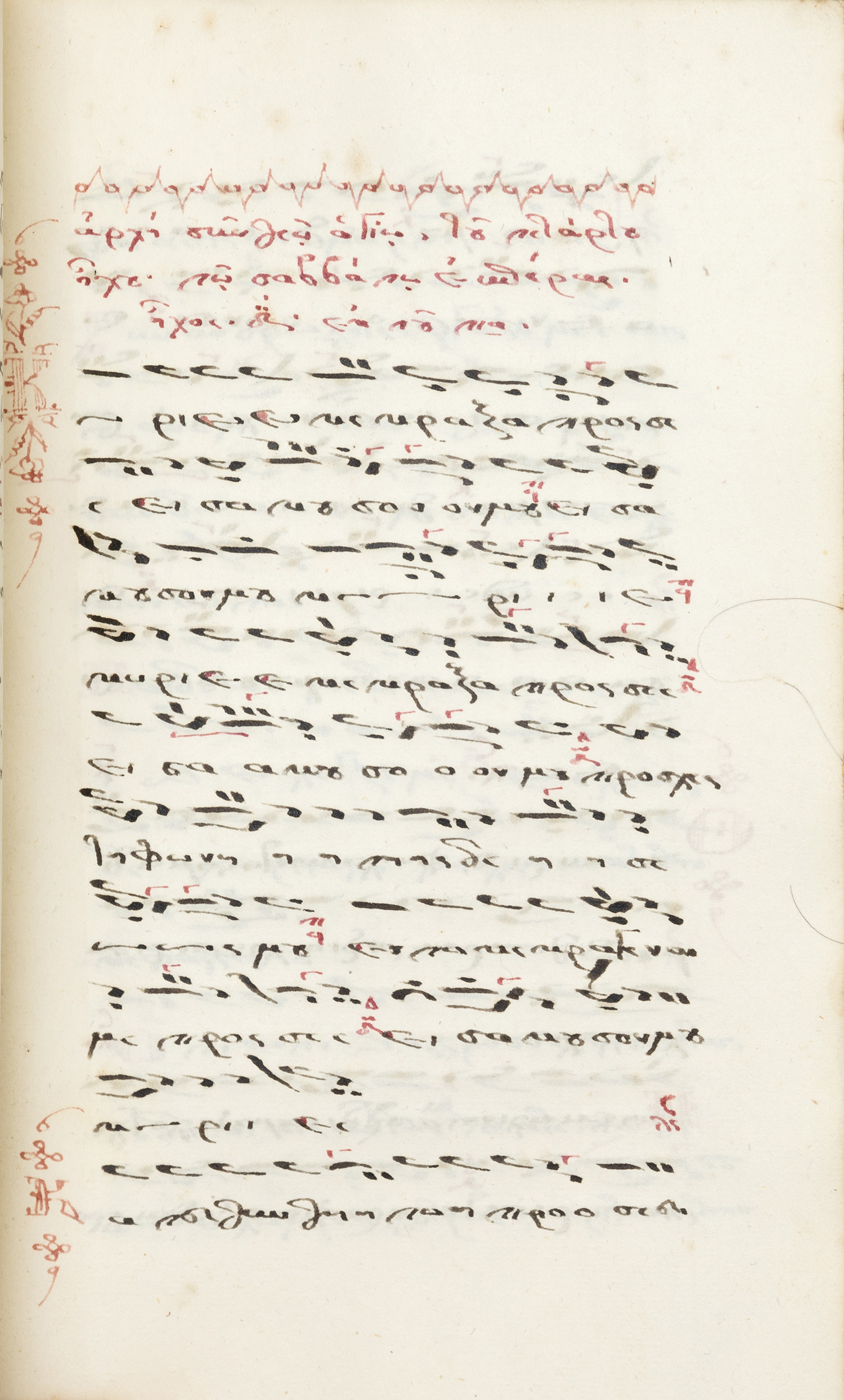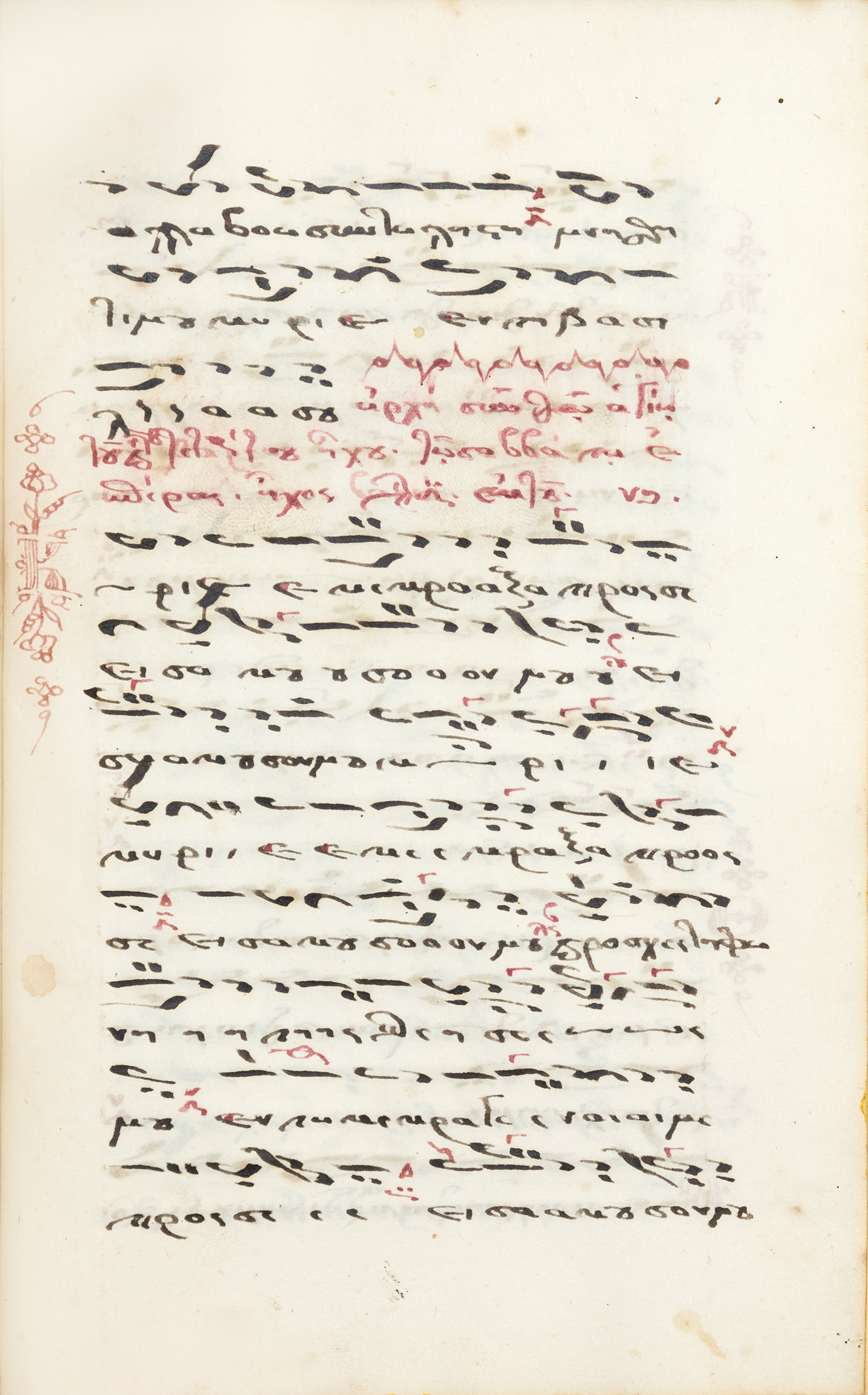 Τιμή εκτίμησης: € 8.000 - 12.000Χειρόγραφο σε χαρτί, 12 διπλοί στίχοι ανά σελίδα, 8ο (175 x 115 mm.), [α]4 1-78 [8]4 9-158 [16]8: [128] φ. (λευκά τα 4 πρώτα και τα 2 τελευταία φύλλα, το πρώτο λευκό και το τελευταίο λευκό επικολλημένα στο εσωτερικό μέρος του πάνω και κάτω καλύμματος αντίστοιχα και τα φύλλα 8/3 & 8/4). Επίτιτλα και αρχικά γράμματα με κόκκινο μελάνι και χρυσό, αρίθμηση των τευχών από τον γραφέα στην κάτω εσωτερική γωνία της τελευταίας σελίδας τους. Τα ερυθρά διακοσμητικά επίτιτλα στα φύλλα: 1/1, 1/6, 3/3, 6/4, 9/1, 10/8, 12/4, 14/1. Ο τίτλος στο φ. 1/1 κάτω από περίτεχνο ερυθρό πλεκτό διακοσμητικό μοτίβο και μεγάλο αρχικό γράμμα «Κ» περίτεχνα διακοσμημένο με ανθέμια. Η ύλη του Αναστασιματαρίου, με τα αναστάσιμα τροπάρια ανά ήχο και προτασσόμενα τα Κεκραγάρια του Βυζαντίου Πέτρου, από το φ. 1/6 και εξής («ἕτερα κεκραγάρια, κύρ πέτρου βυζαντίου»). Τα ένδεκα εωθινά δοξαστικά του Λαμπαδαρίου Πέτρου από το φ. 15/4 και εξής («ἀρχή σύν θεῷ ἁγίῳ, τῶν ἕνδεκα ἑωθινῶν τοῦ αὐτοῦ πέτρου»). Δέρμα σύγχρονο με τη γραφή, χρυσή διακόσμηση στη ράχη και στα καλύμματα (χρυσά διαζώματα και αστεροειδές μοτίβο στη ράχη, χρυσή διακοσμητική μπορντούρα διατρέχει περιμετρικά τα καλύμματα, χρυσό ρομβοειδές διακοσμητικό άνθινο μοτίβο στο κέντρο και μικρότερο στις τέσσερις γωνίες των καλυμμάτων), επιχρωματισμένες οι ακμές. • ΣΗΜΑΝΤΙΚΑ ΜΟΥΣΙΚΟΛΟΓΙΚΑ ΣΧΟΛΙΑ: Τα μέλη του Αναστασιματαρίου του Πέτρου είναι εξηγημένα από τον ίδιο γραφέα του χειρογράφου, Απόστολο Κώνστα, με εξαιρετικά ιδιότυπα ερμηνευτικά μουσικά μοτίβα. Παρατηρούνται σημαντικές διαφορές στις μουσικές γραμμές και «θέσεις» σε σχέση με την έντυπη έκδοση του Αναστασιματαρίου (Βουκουρέστι 1820) με την εισαγωγή έντονων και εκτενών παραχορδών σε κάποια τροπάρια έως και εντελώς διαφορετικών μουσικών μελισματικών γραμμών. Επίσης, μερικές μουσικές «θέσεις» στον γ´ ήχο αποδίδονται συντετμημένες με τη χρήση ενός μουσικού συμπλέγματος, το οποίο χρησιμοποιεί κατ’ εξακολούθηση μόνο ο Κώνστας. Ο Απόστολος Κώνστας δραστηριοποιήθηκε στην Κωνσταντινούπολη (τέλη 18ου αι. – 1840), ως κωδικογράφος, δάσκαλος, θεωρητικός, εξηγητής και συνθέτης. Ως εξαιρετικός ταχυγράφος θεωρείται ο παραγωγικότερος κωδικογράφος της εποχής του. Σήμερα έχουν εντοπιστεί περισσότερα από 150 αυτόγραφά του. • ΣΗΜΑ ΝΤΙΚΟ ΑΥΤΟΓΡΑΦΟ ΤΟΥ ΑΠΟΣΤΟΛΟΥ ΚΩΝΣΤΑ ΜΕ ΕΝΤΕΛΩΣ ΑΓΝΩΣΤΗ ΕΞΗΓΗΣΗ ΤΟΥ ΑΝΑΣΤΑΣΙΜΑΤΑΡΙΟΥ ΤΟΥ ΠΕΤΡΟΥ.