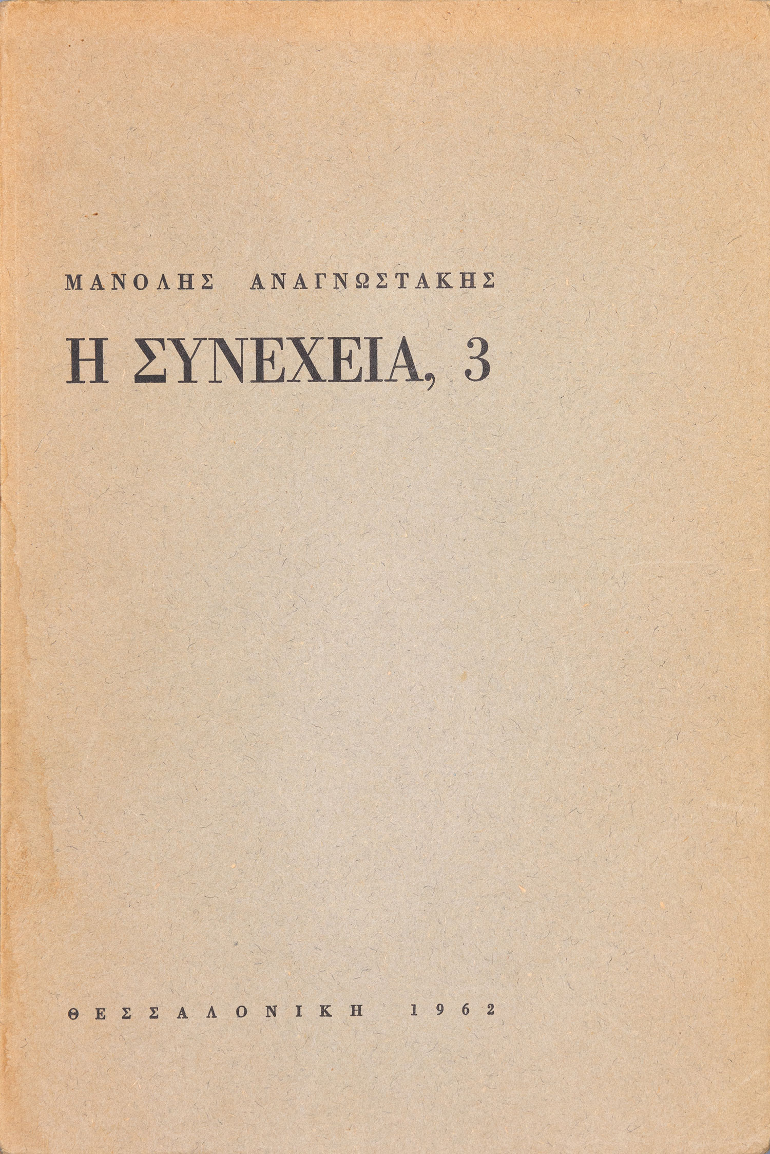 Τιμή εκτίμησης: € 150 - 200ΠΡΩΤΗ ΕΚΔΟΣΗ, εκτός εμπορίου. [24] σ. Αντίτυπο με ιδιόχειρη αφιέρωση («Στό φίλο Ντ. Χριστιανόπουλο / μέ θερμές εὐχαριστίες / Μανόλης / 1991 / [από το χέρι του Χριστιανόπουλου:] Ἰούλιος»). Αρχικά εξώφυλλα. [μαζί, του ιδίου:] Ἡ συνέχεια, 3. Θεσσαλονίκη 1962. • ΠΡΩΤΗ ΕΚΔΟΣΗ, σε 600 αντίτυπα. 27 σ. Αντίτυπο με ιδιόχειρη αφιέρωση («Στό φίλο ποιητή Ντίνο Χριστιανόπουλο / Μανόλης / 1962»). Αρχικά εξώφυλλα. (2)