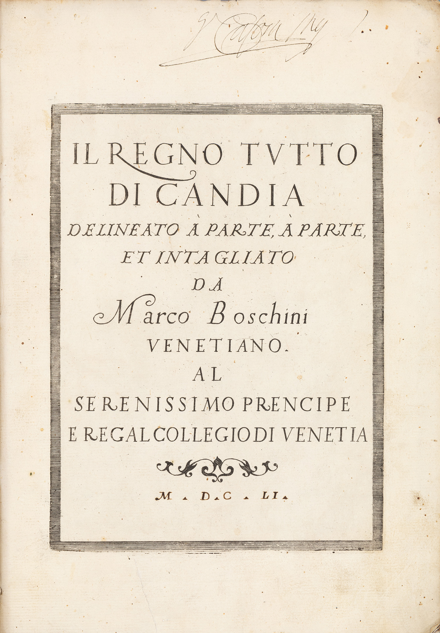 Il Regno tutto di Candia, delineato à parte, à parte, et intagliato da Marco Boschini Venetiano, al Serenissimo Prencipe e Regal Collegio di Venetia.
