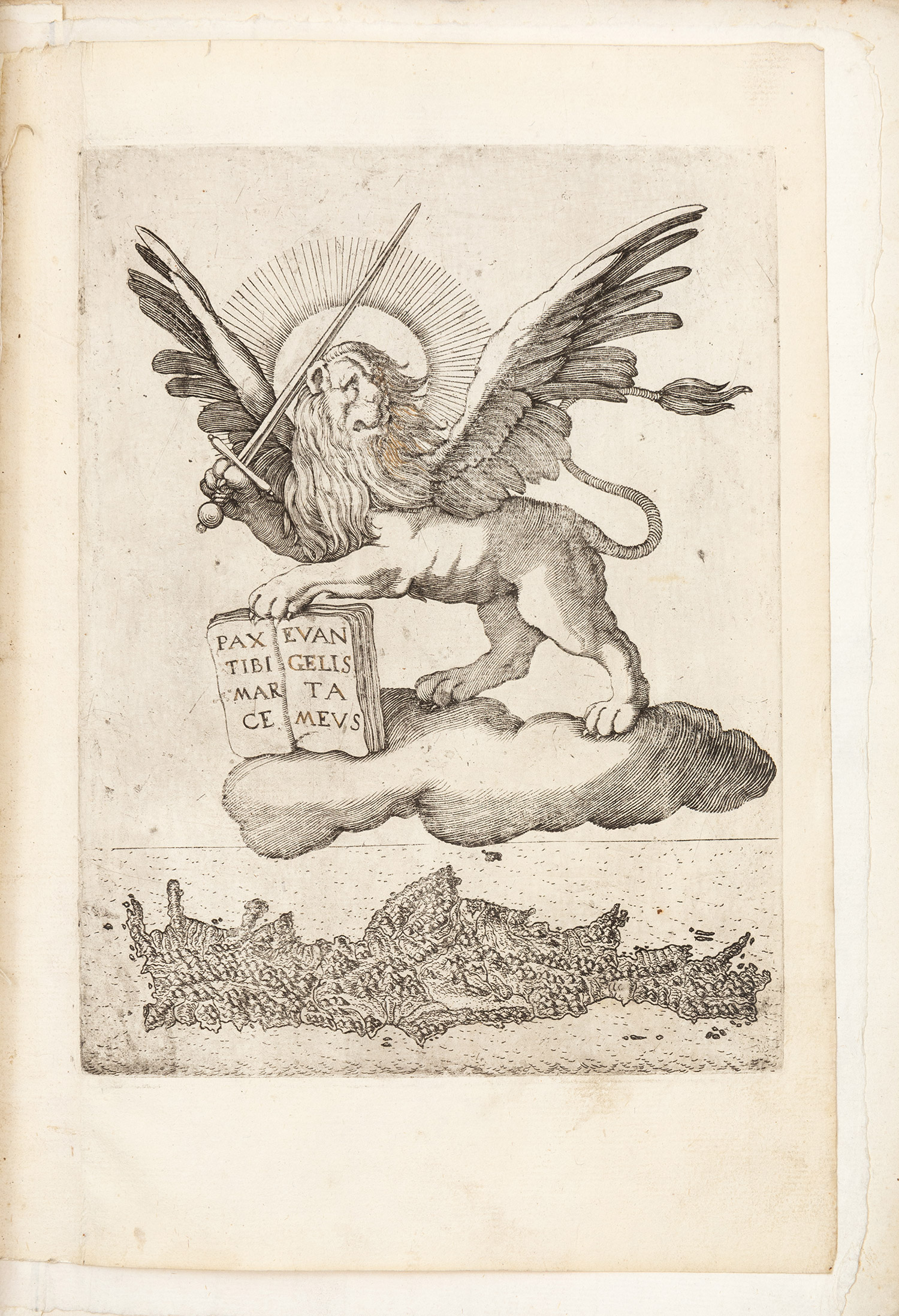 Τιμή εκτίμησης: € 4.000 - 6.000ΠΡΩΤΗ ΕΚΔΟΣΗ. μικρό folio (316 x 227 mm.). Αντίτυπο με 2 χαλκόγραφους τίτλους (ο πρώτος μόνο με χρονολογία, ο δεύτερος με χρονολογία και σημείωση για το εκδοτικό προνόμιο), αλληγορική χαλκογραφία στην αρχή (ο λέων του Αγίου Μάρκου πάνω από την Κρήτη), στοιχειοθετημένο φύλλο με αφιέρωση, 61 χαλκογραφίες (9 αναδιπλούμενες, περιλαμβάνεται η χαλκογραφία με τίτλο «Città di Candia assediata», που συχνά λείπει). Περγαμηνή της εποχής της έκδοσης (λερωμένη, μικρές φθορές, κόκκινες οι ακμές). Atabey 136, Blackmer 171, Brunet, I, στ. 1123, Zacharakis 592-640, πρβ. Weber, II, 802 (η μορφή χωρίς χρονολογία).