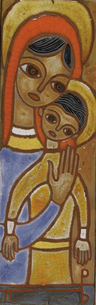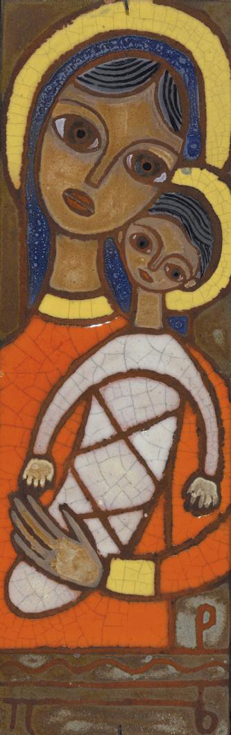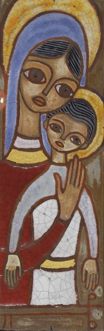 Πέντε κεραμεικά πλακάκια μέ τήν Παναγία.