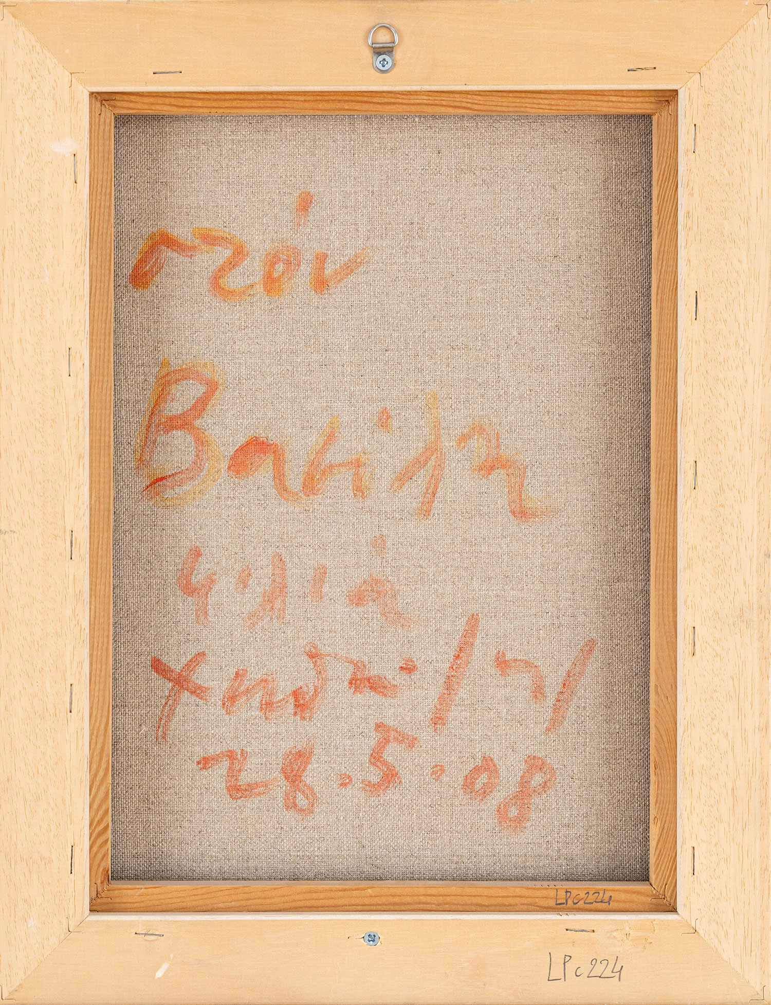 υπογεγραμμένο κάτω αριστερά: Χαδούλης με αφιέρωση του καλλιτέχνη στην πίσω όψη