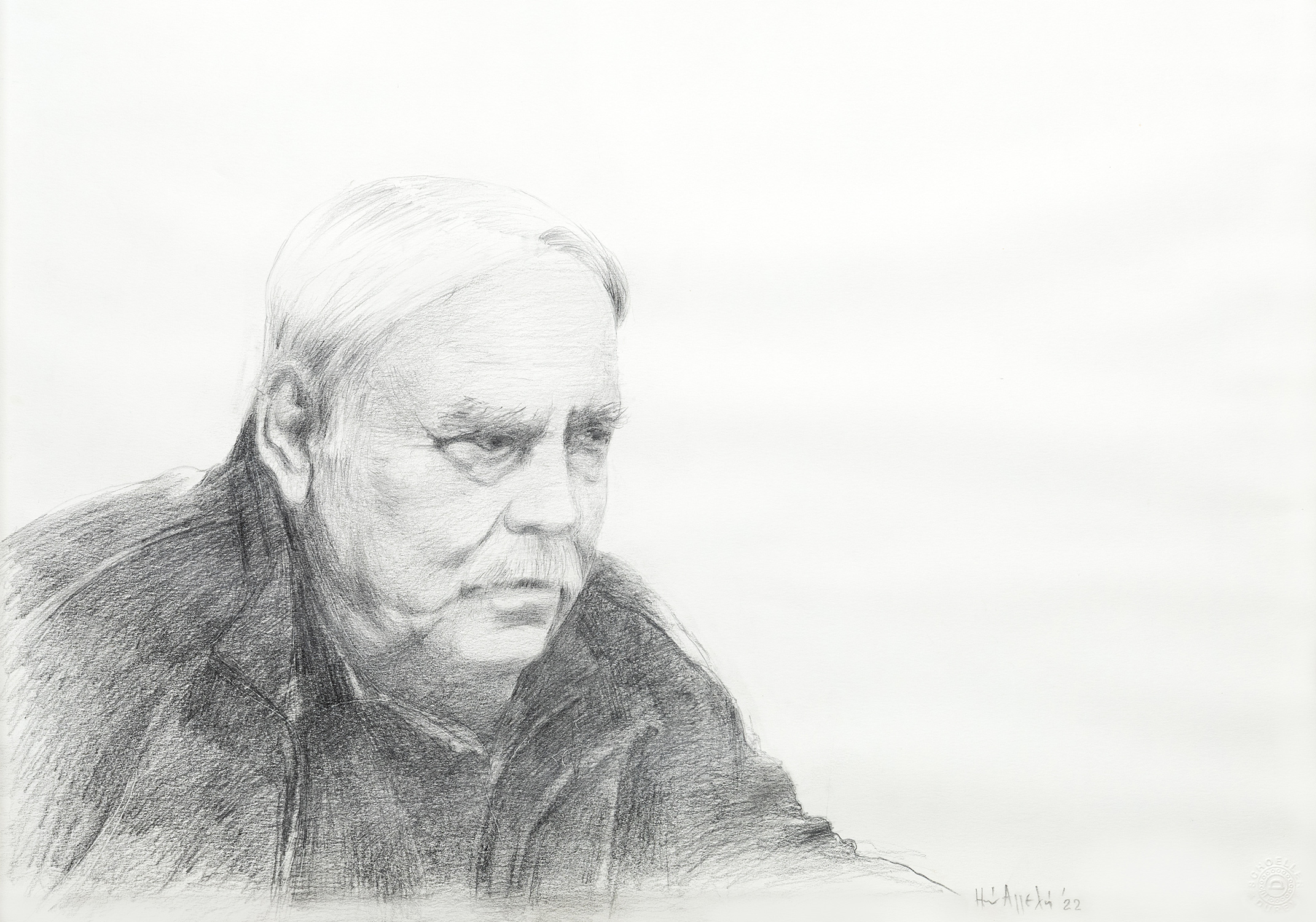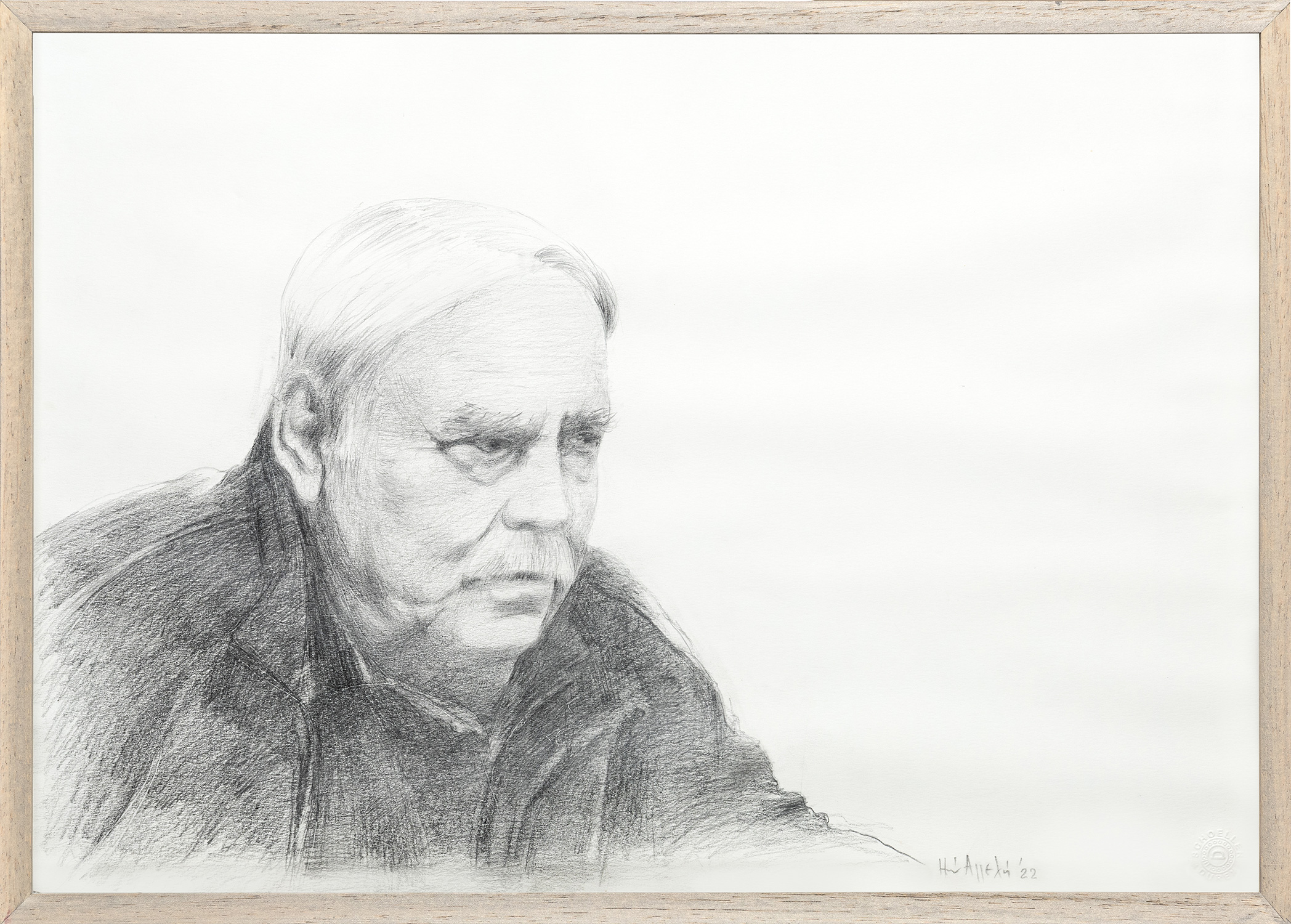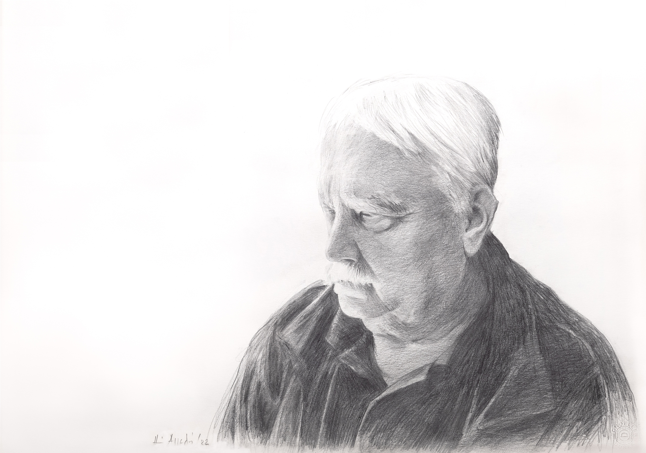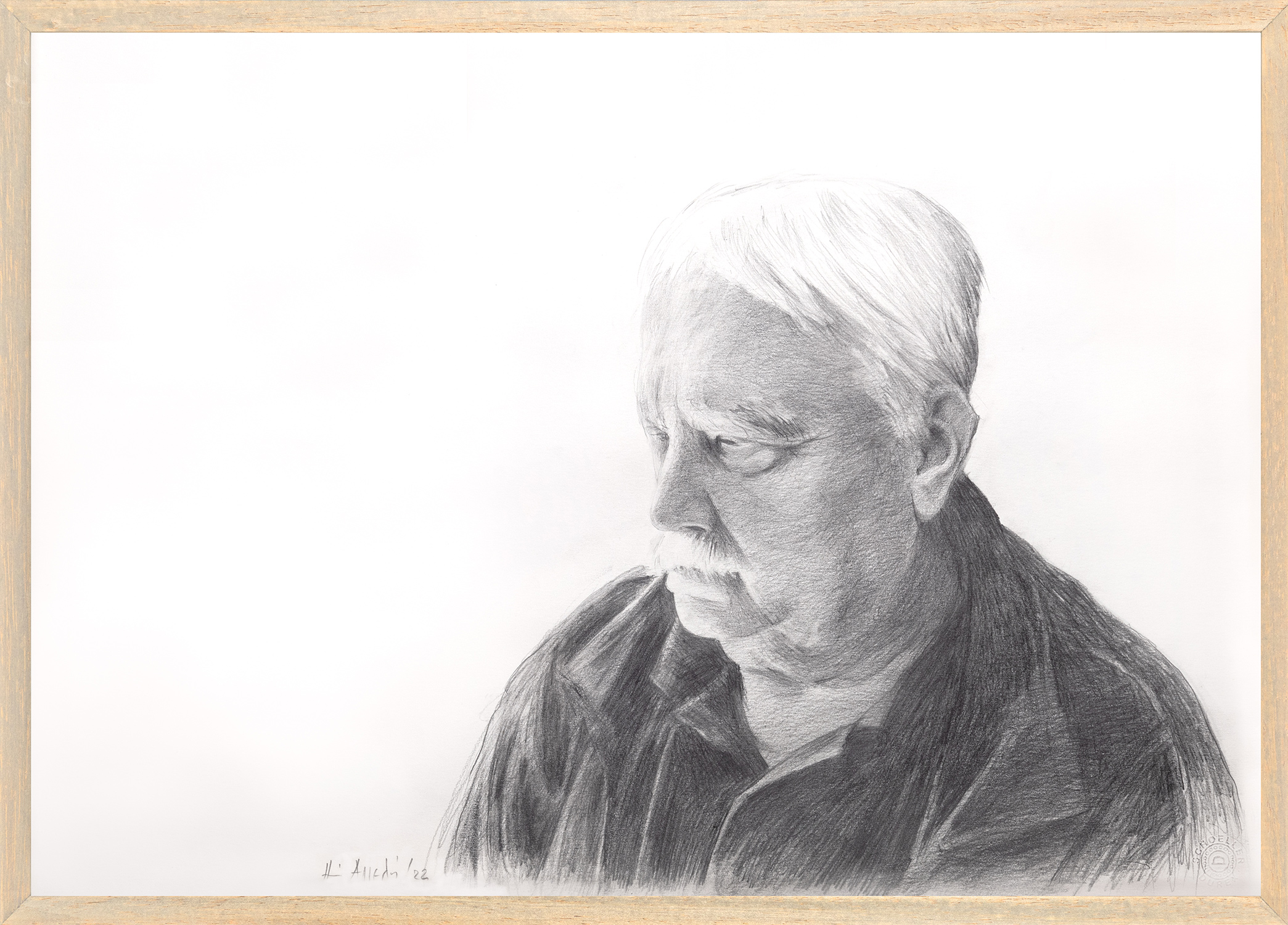 α) Προσωπογραφία Λάκη Παπαστάθη, β) Προσωπογραφία Λάκη Παπαστάθη
