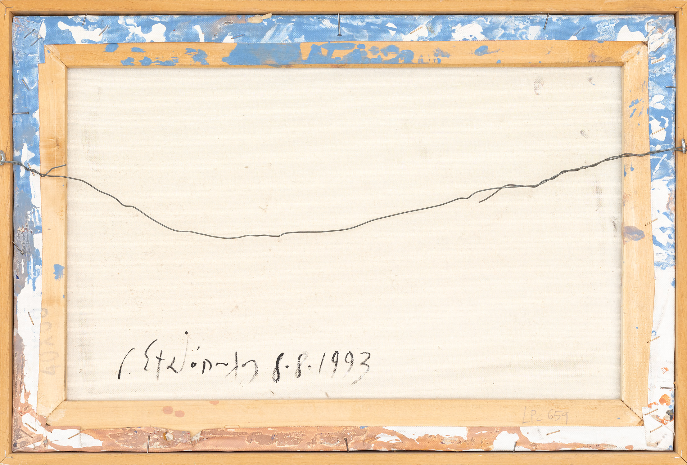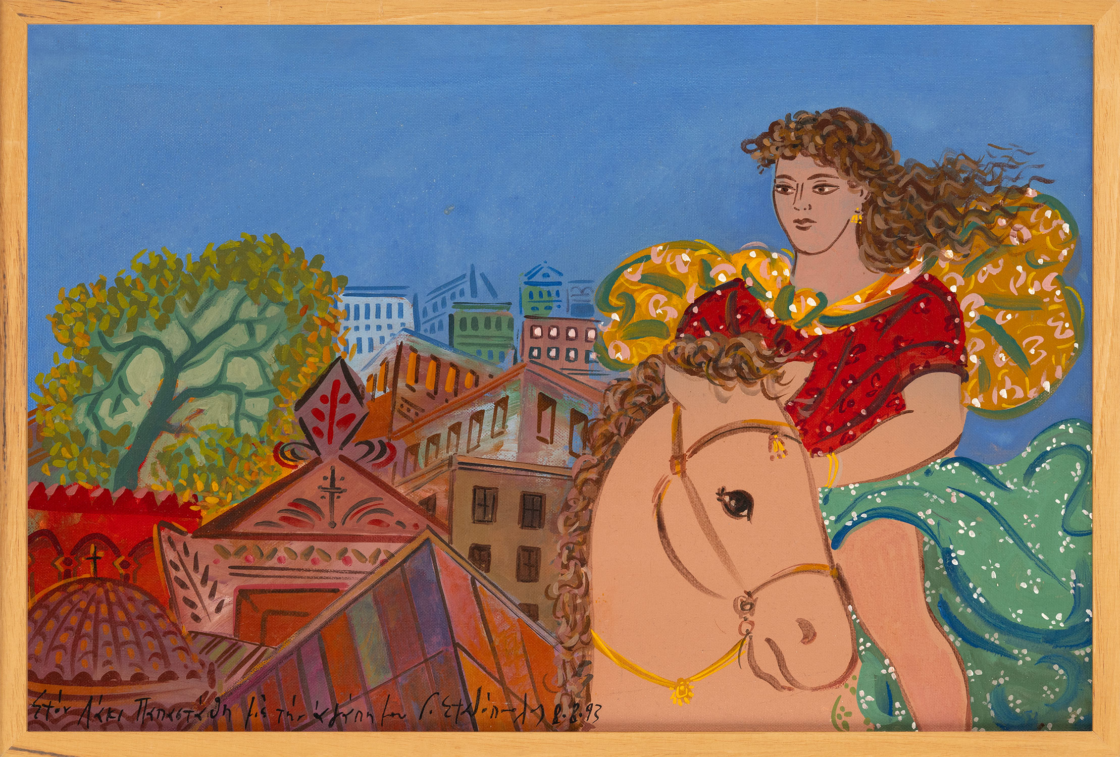 υπογεγραμμένο και χρονολογημένο κάτω στο μέσο: Γ. Σταθόπουλος 8.8.93 με αφιέρωση του καλλιτέχνη κάτω αριστερά