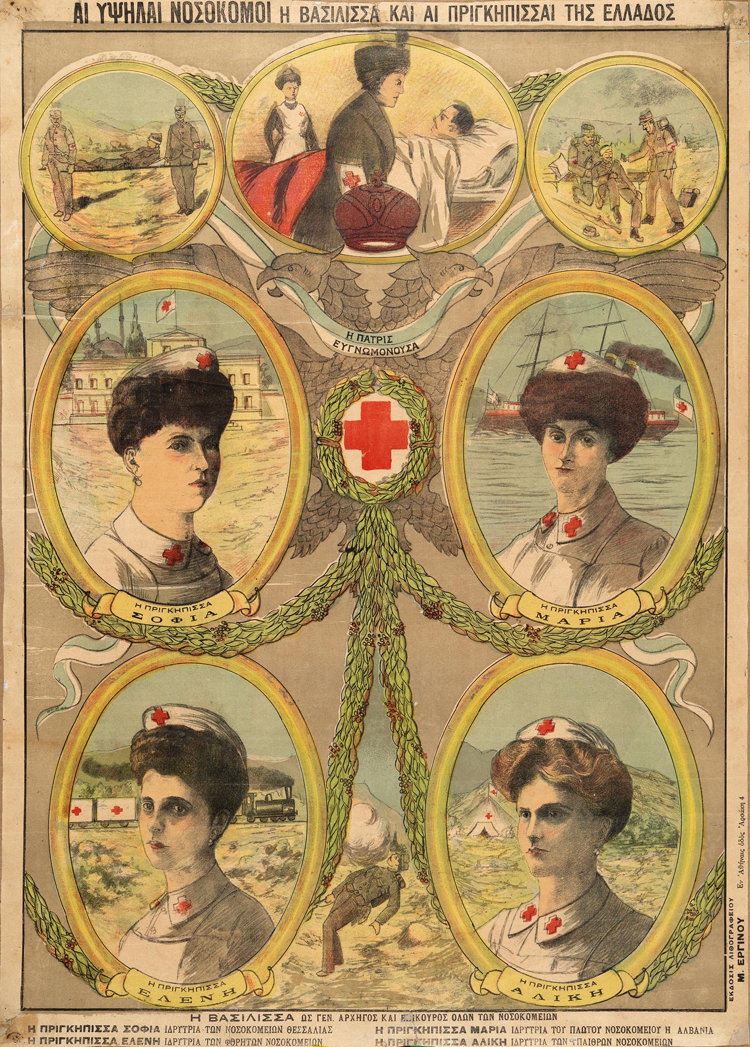 Αἱ ὑψηλαί νοσοκόμοι, ἡ βασίλισσα καί αἱ πριγκήπισσαι τῆς Ἑλλάδος.