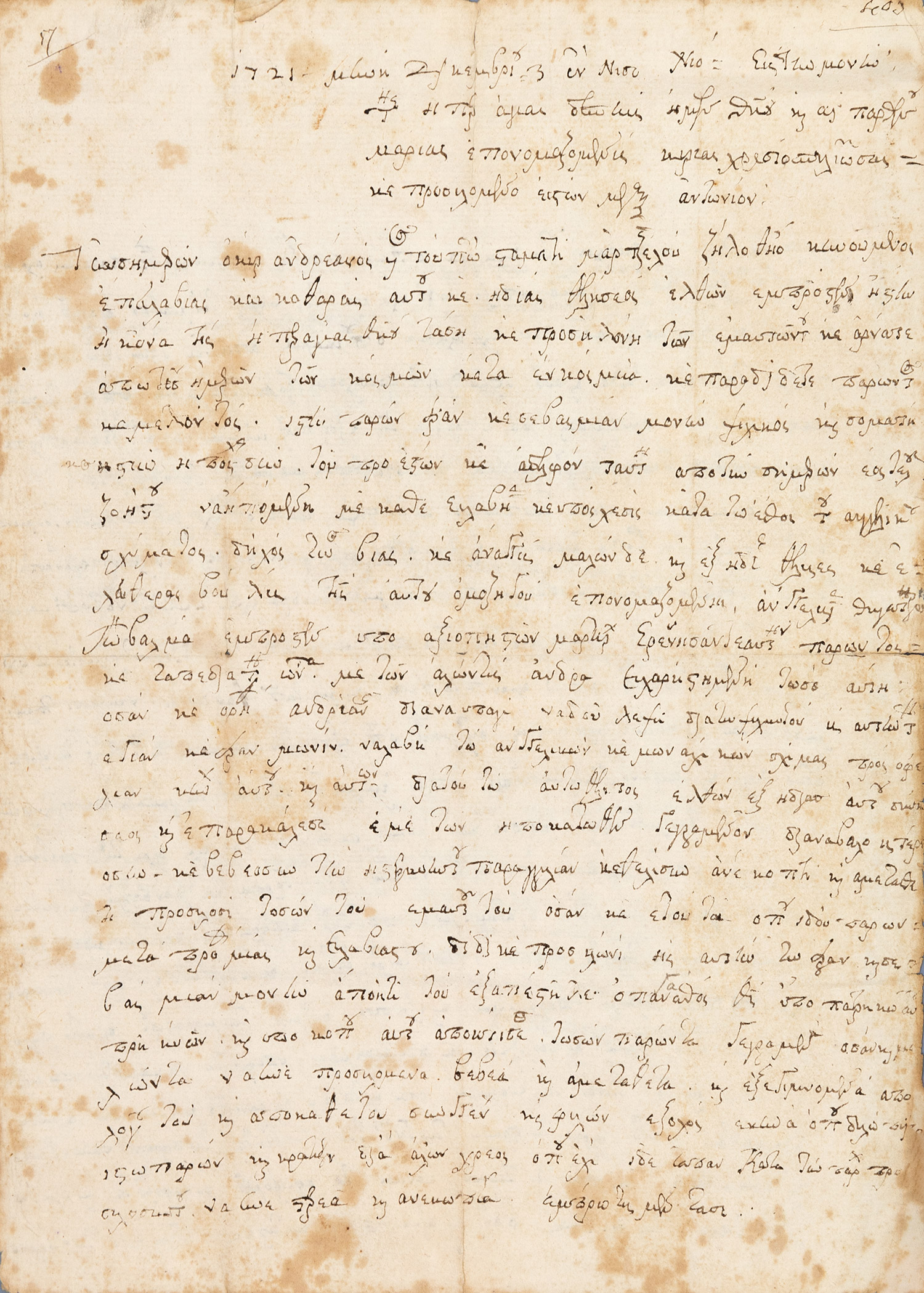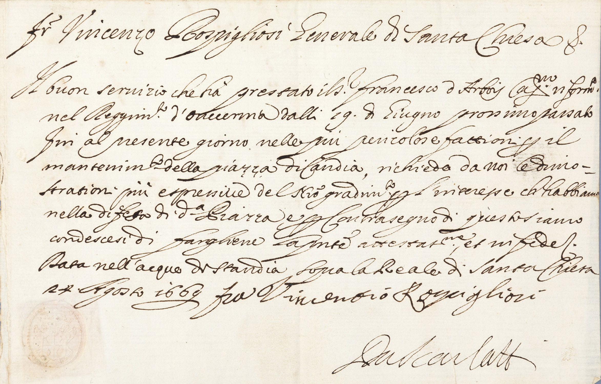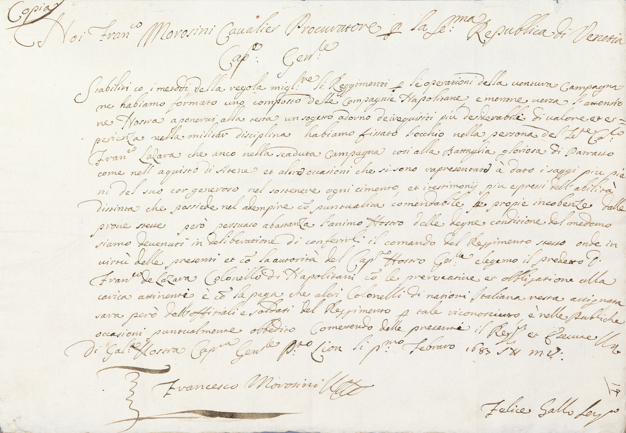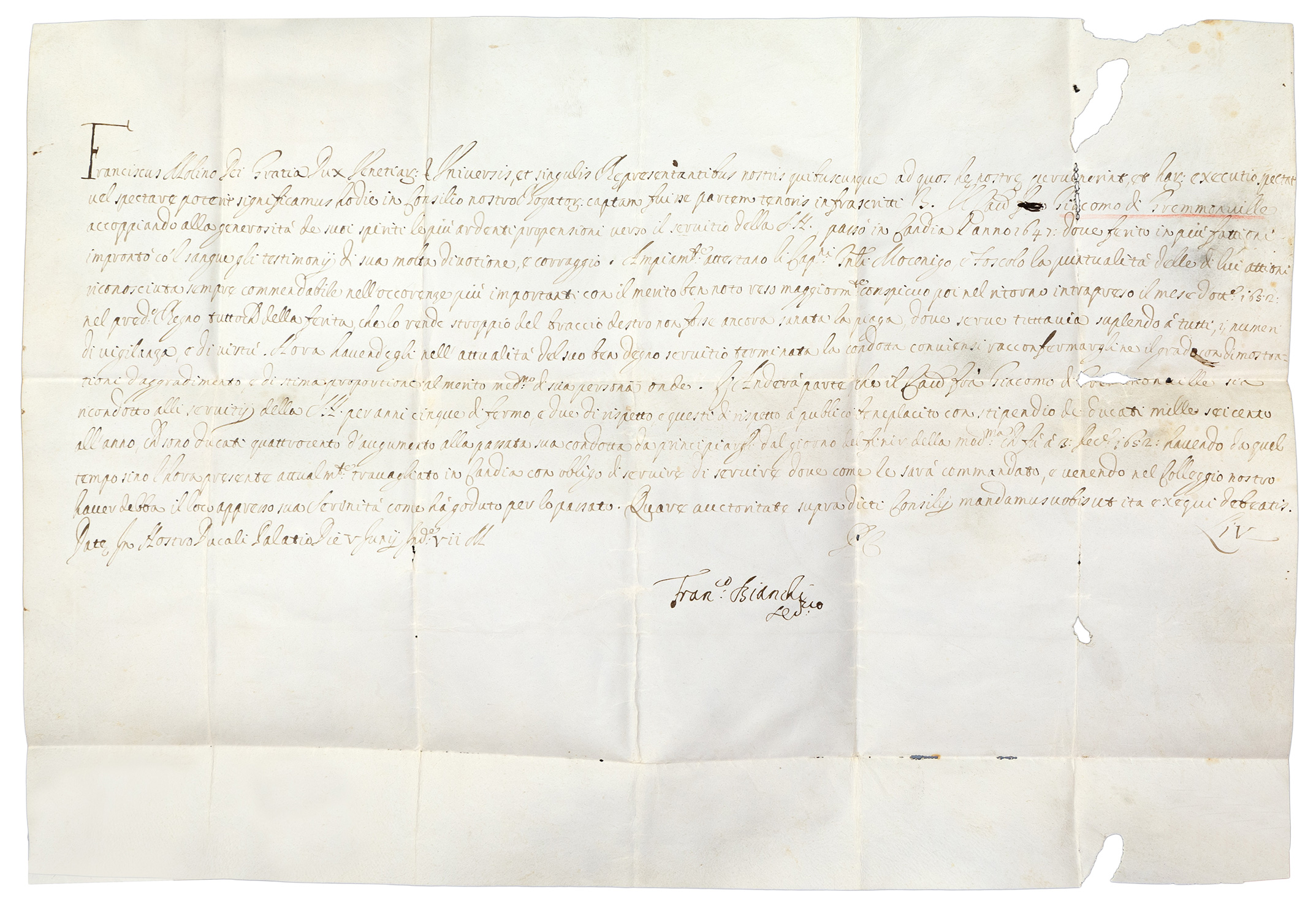 Ἔγγραφο τοῦ Δούκα τῆς Βενετίας Francesco Molino.