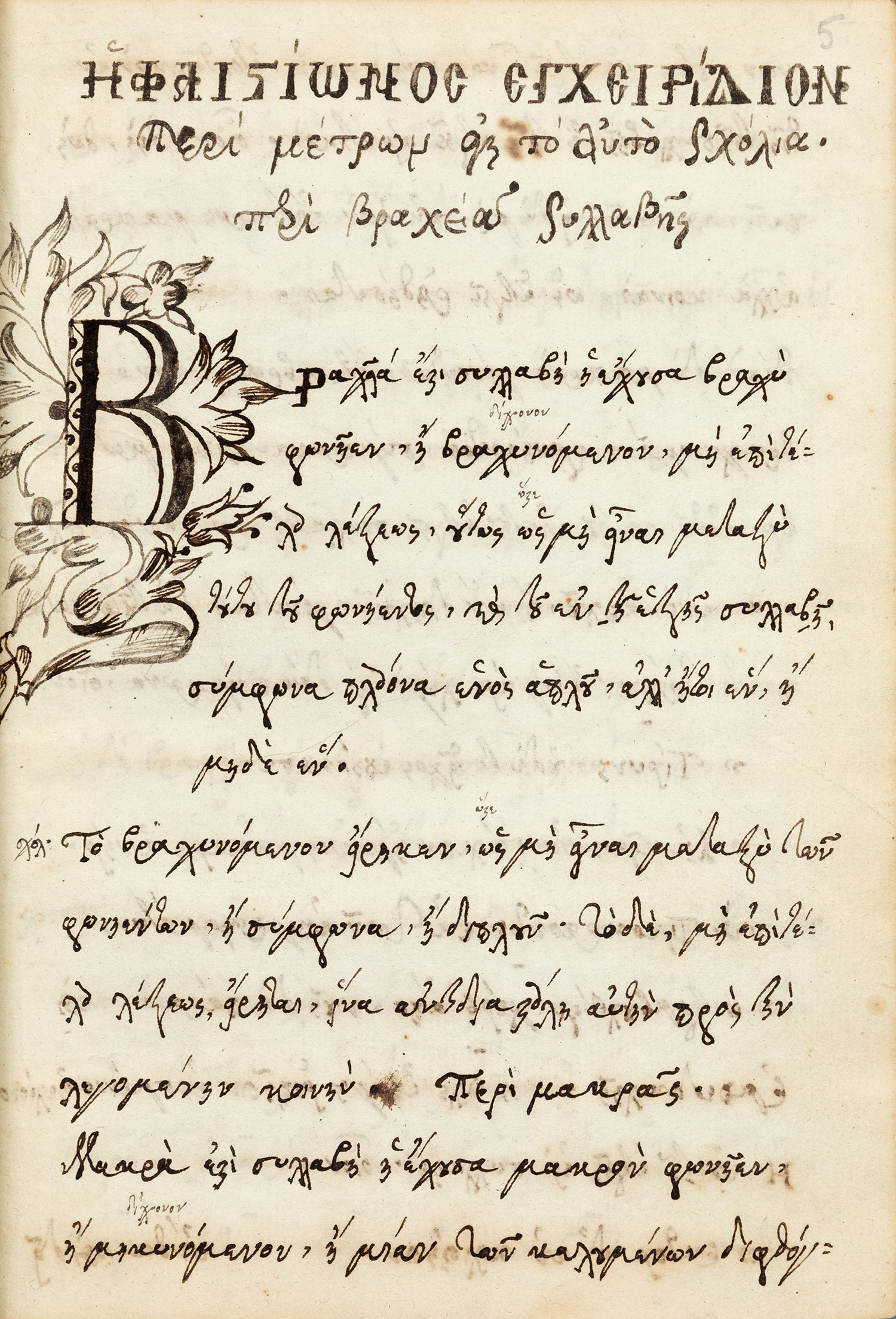 Ἡφαιστίωνος Ἐγχειρίδιον περὶ μέτρων. Εἰς τὸ αὐτὸ σχόλια περὶ βραχείας συλλαβῆς.