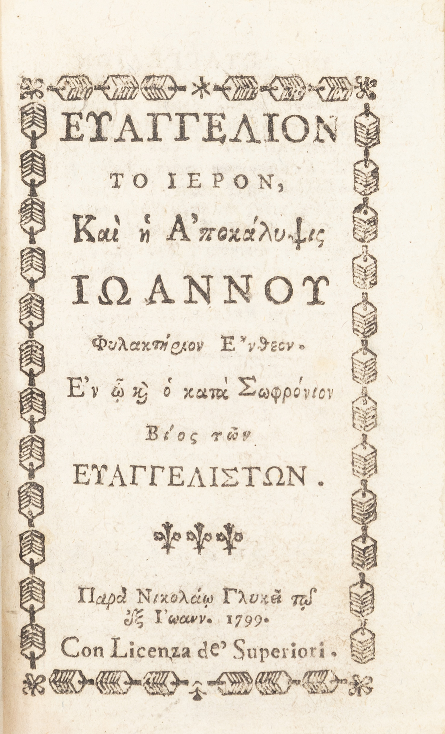 Εὐαγγέλιον τό ἱερόν, καί ἡ ἀποκάλυψις Ἰωάννου, φυλακτήριον ἔνθεον, ἐν ᾧ καί ὁ κ...