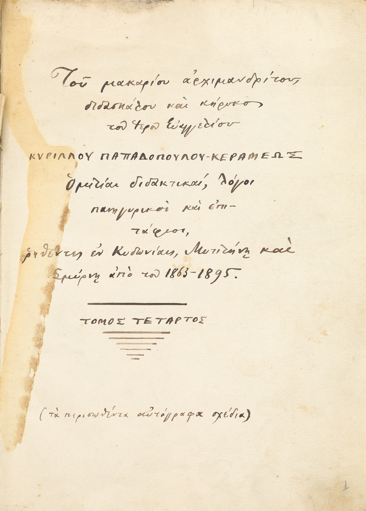 Ὀκτάφυλλο τεῦχος μὲ τίτλο: «Τόμος συνοδικὸς περὶ τῶν σταυροπηγιακῶν μοναστηρίων»...