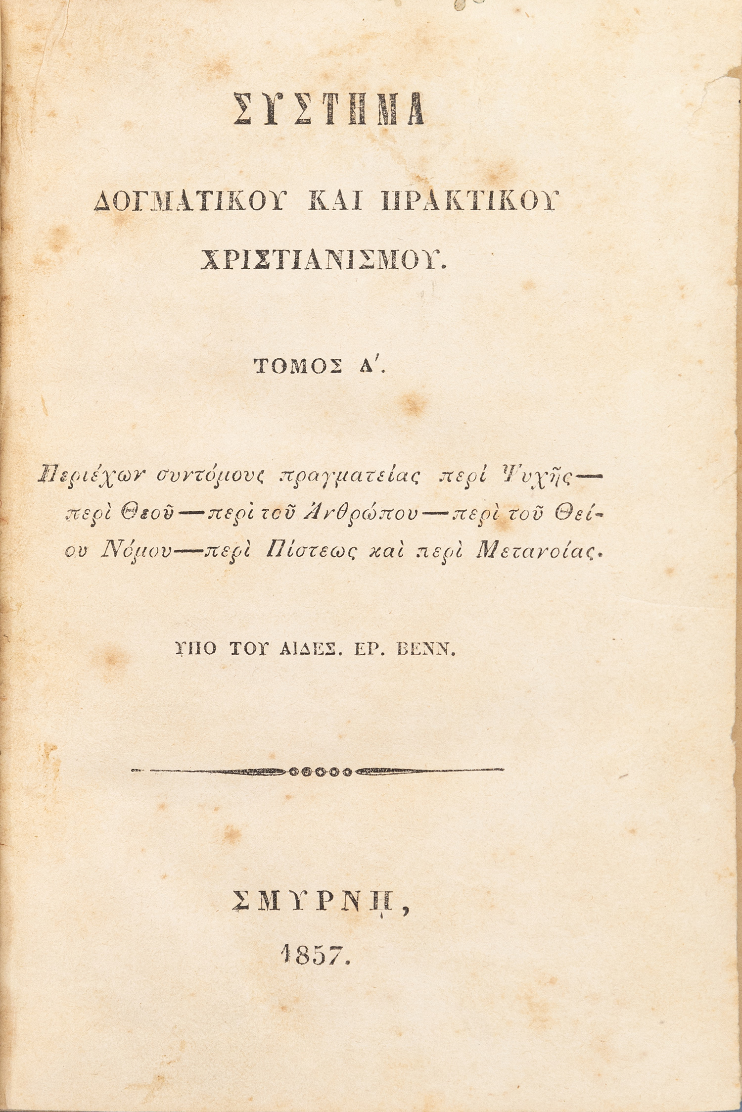 Σύστημα δογματικοῦ καί πρακτικοῦ χριστιανισμοῦ, τόμος Α´, περιέχων συντόμους πρα...