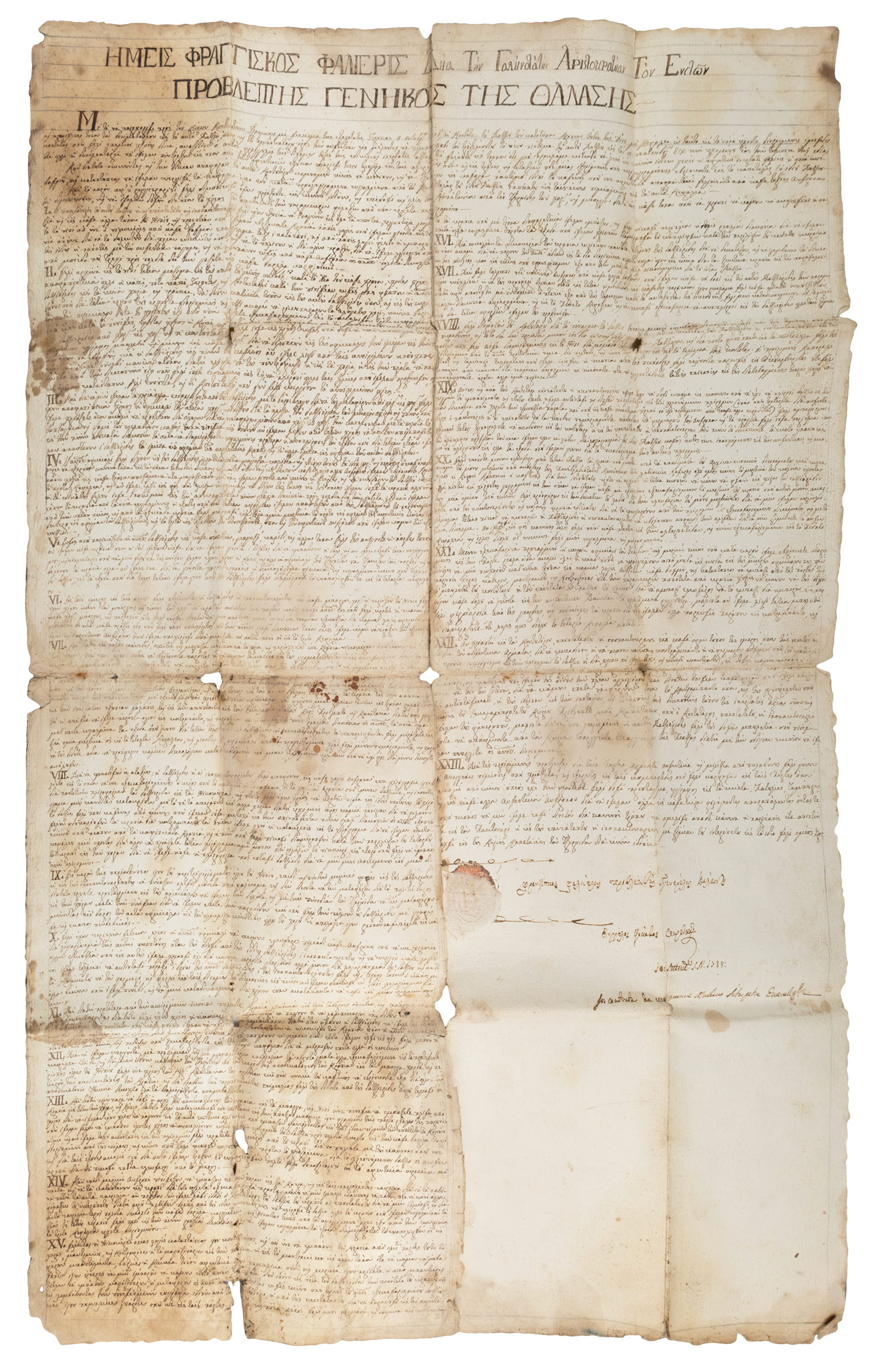 Ἐπίσημο ἀντίγραφο ἐγγράφου μὲ τὸ ὁποῖο ὁ Γενικὸς Προβλεπτὴς καὶ Γενικὸς Ναύαρχος...