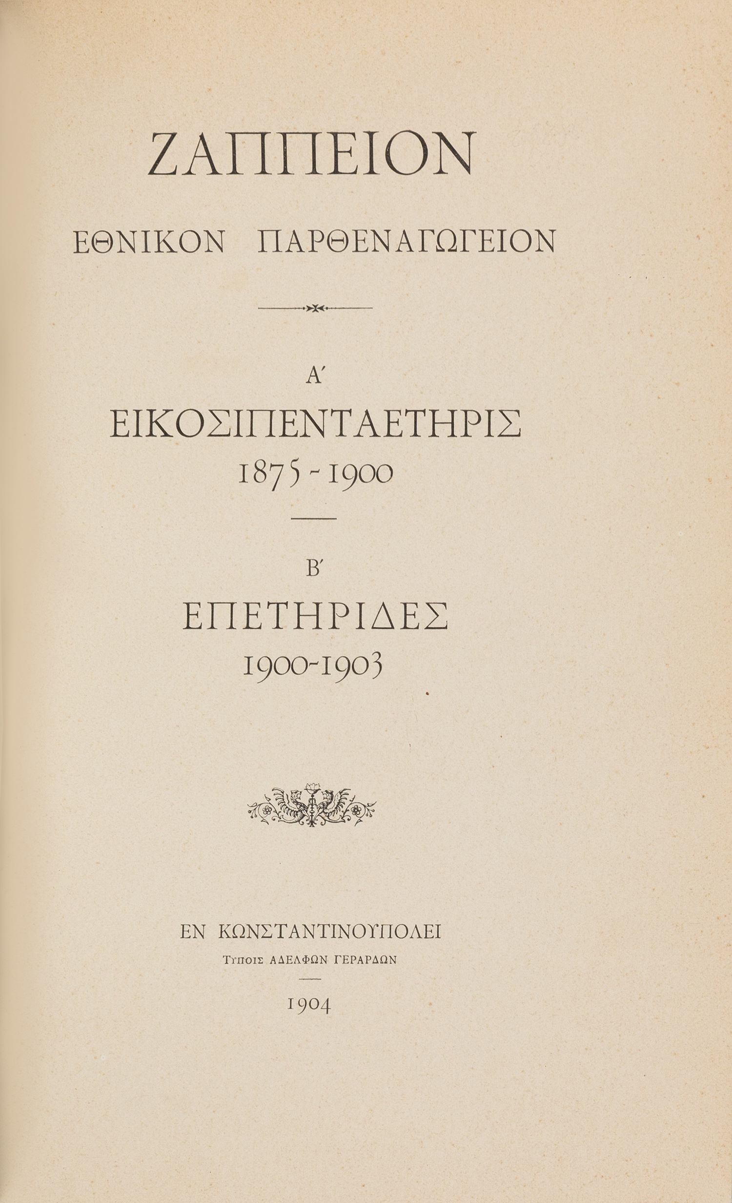 Ζάππειον Ἐθνικόν Παρθεναγωγεῖον. Α´ εἰκοσιπενταετηρίς 1875-1900. Β´ ἐπετηρίδες 1...