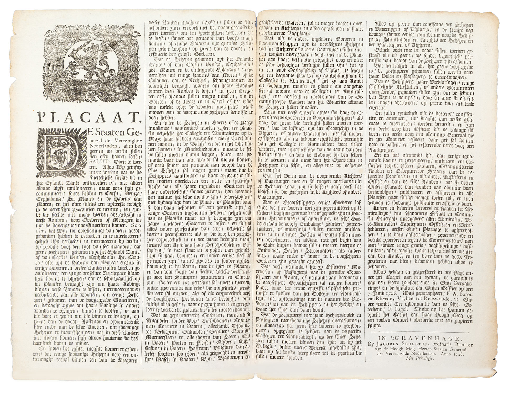 PLACAAT. De Staaten Generaal der Vereenighde Nederlanden, allen den geenen die d...