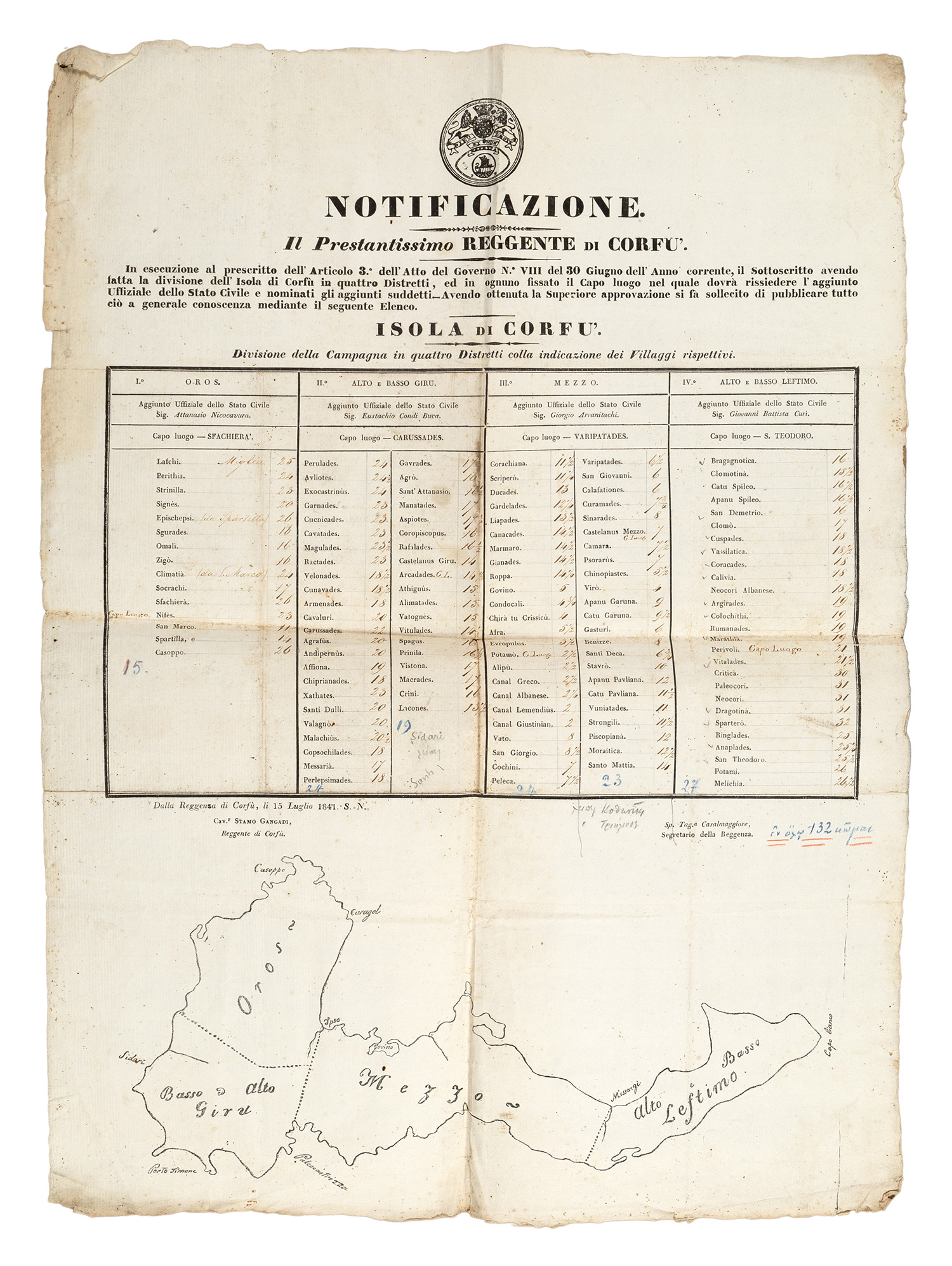 NOTIFICAZIONE. Il Prestantissimo REGGENTE DI CORFÙ. In esecuzione al prescritto...
