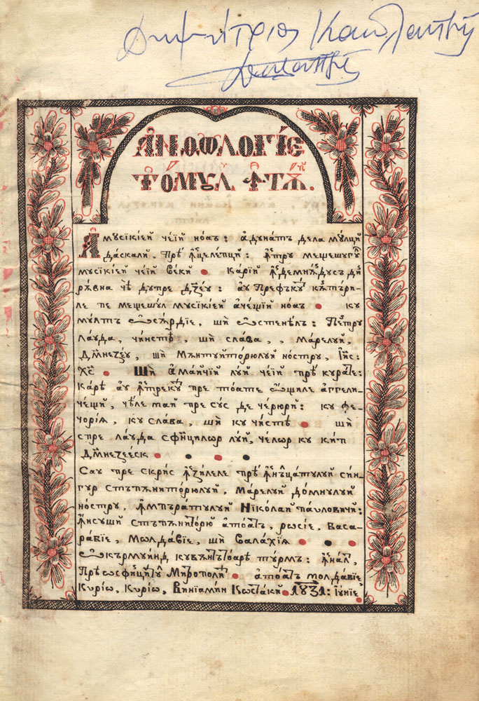 Ἐπιστολάριον, ἐκ διαφόρων ἐρανισθέν καί τυπωθέν πατριαρχεύοντος τοῦ Παναγιωτάτου...