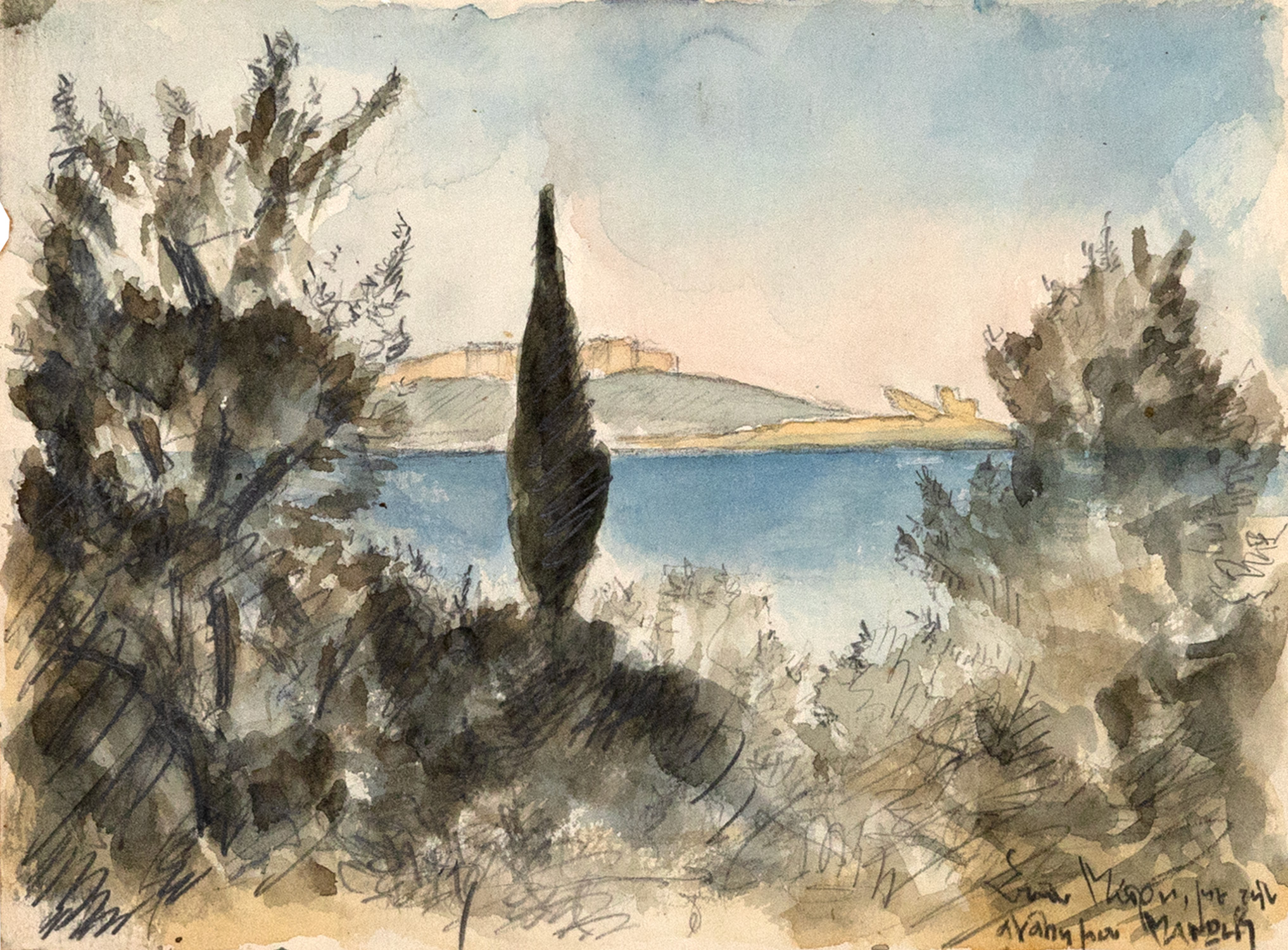 υπογεγραμμένο κάτω δεξιά: MANΩLIS με αφιέρωση κάτω δεξιά