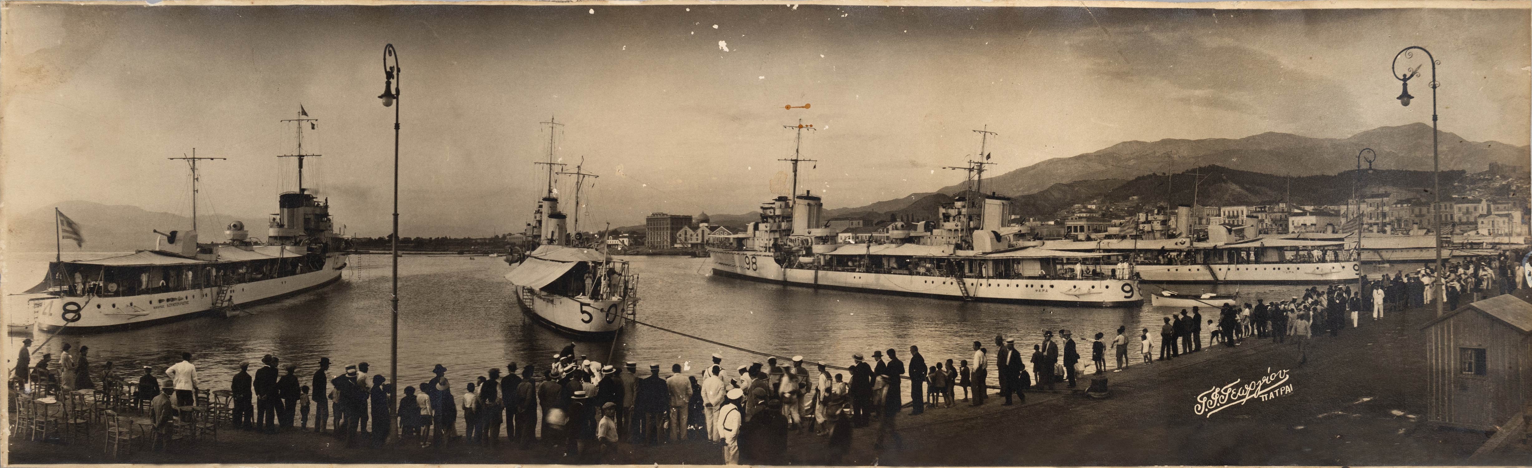 Τὰ ἀντιτορπιλικὰ «Κουντουριώτης», «Σπέτσαι», «Ψαρᾶ» καί «Ὕδρα» στὸν Μῶλο Ἁγ. Νικολάου στὴν Πάτρα.