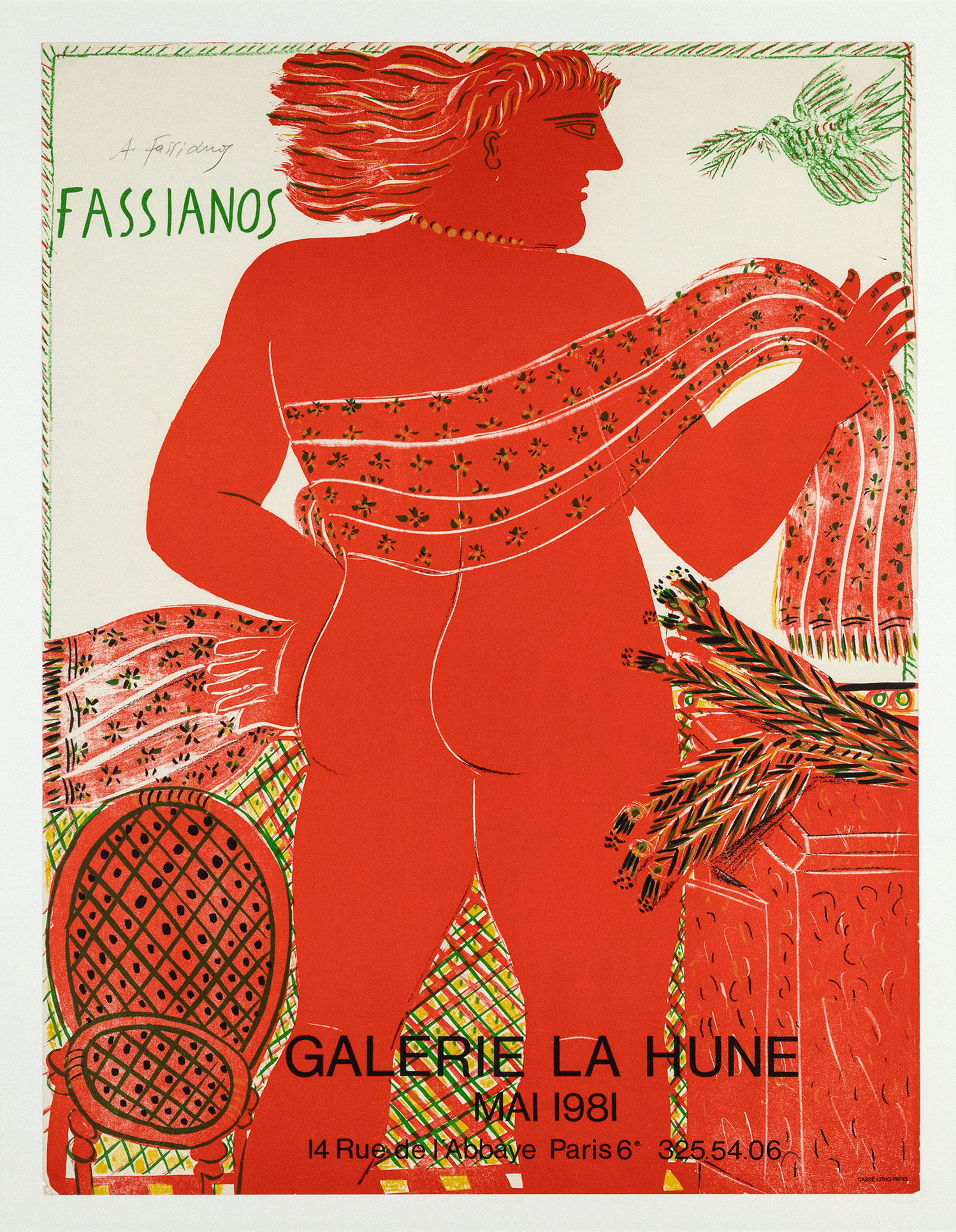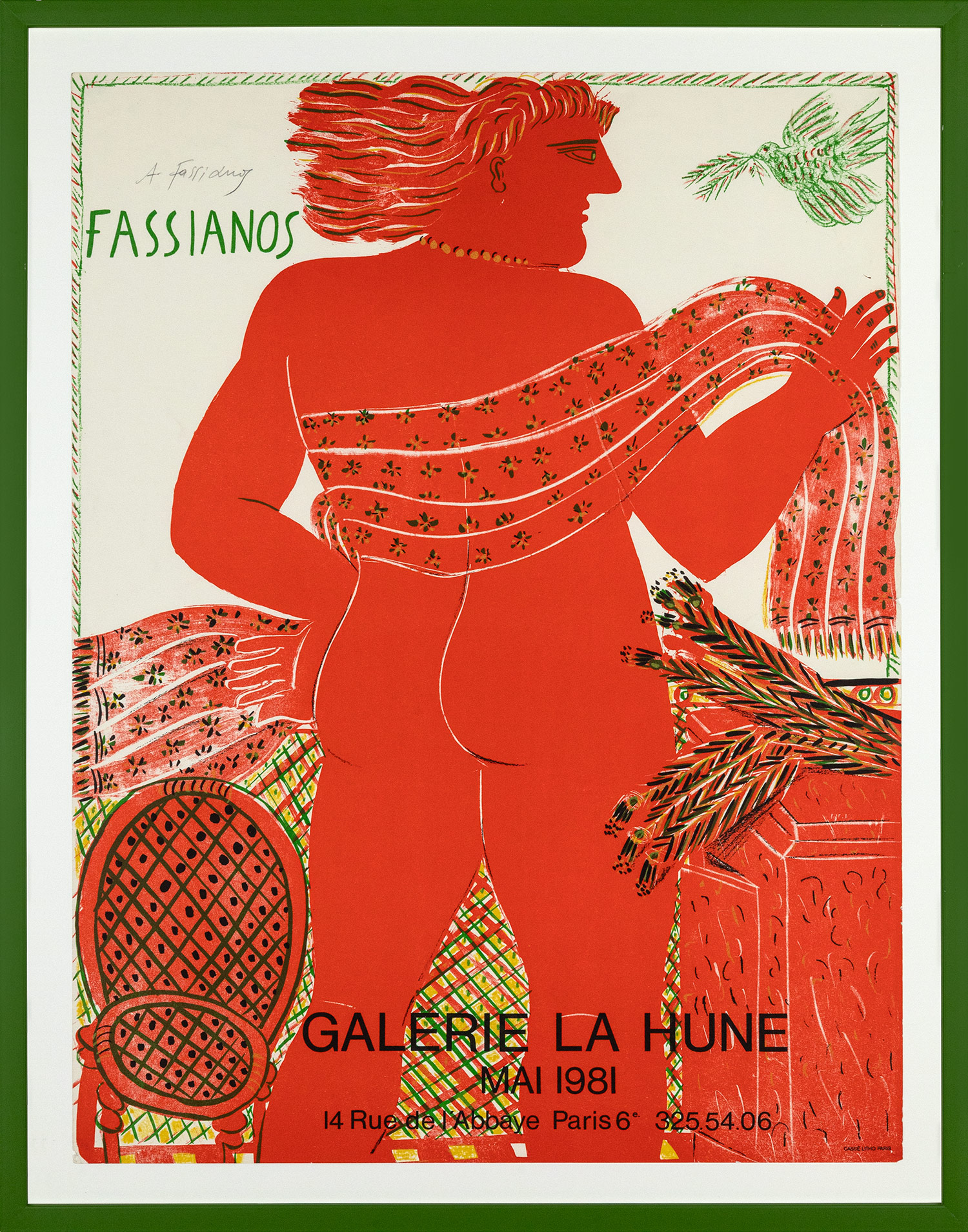 Χρωμολιθόγραφη αφίσα, 685 x 515 mm., υπογεγραμμένη από τον καλλιτέχνη πάνω αριστερά: «A. Fassianos». Σε κορνίζα. • Βλ. Φασιανός – Αφίσες, Βουρκαριανή Κέας, 1989 (εικονίζεται).