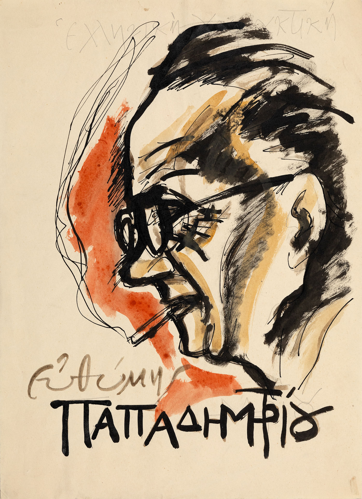 Μολύβι, μελάνι και υδατογραφία σε χαρτί, 396 x 290 mm. • Πιθανώς μακέτα εξωφύλλου ή αφίσας.