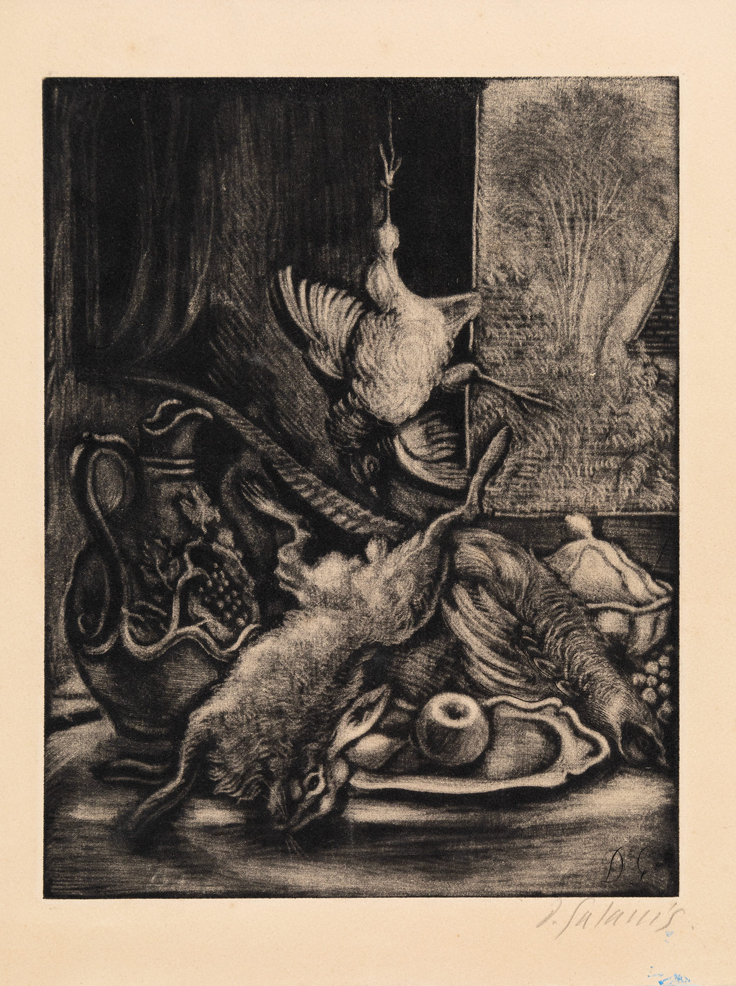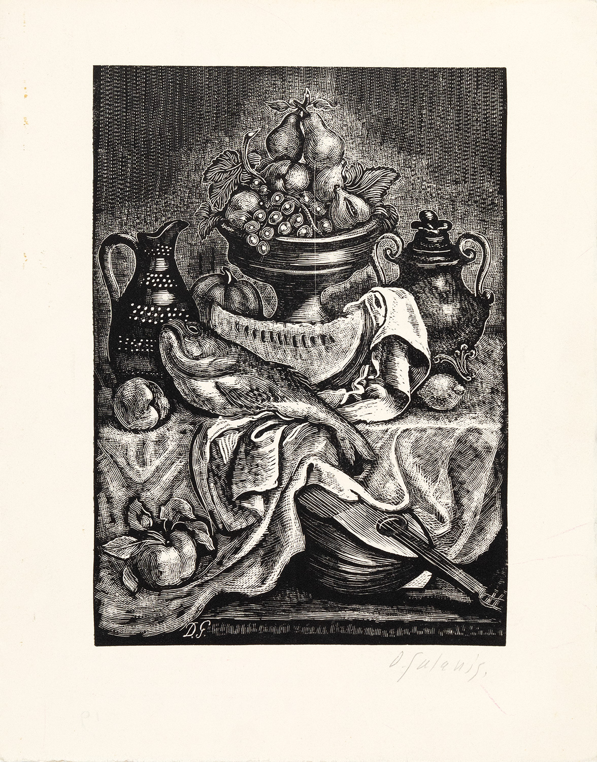 Τιμή εκτίμησης: € 500 - 700Εκδόσεις περιορισμένες σε 106 αριθμημένα αντίτυπα η κάθε μία, υπογεγραμμένες από τον καλλιτέχνη στο κάτω περιθώριο των χαρακτικών. Δίφυλλα, 280 x 223 και 278 x 218 mm., το πρώτο με μία ολοσέλιδη ξεστή χαλκογραφία, 232 x 180 mm. (Νεκρή φύση) και το δεύτερο με μία ολοσέλιδη ξυλογραφία σε όρθιο ξύλο, 210 x 150 mm. (Νεκρή φύση) στην πρώτη τους σελίδα, και τα δύο χαρακτικά υπογεγραμμένα με αρχικά στην πλάκα. Τα μενού στη σ. [3]. (2)