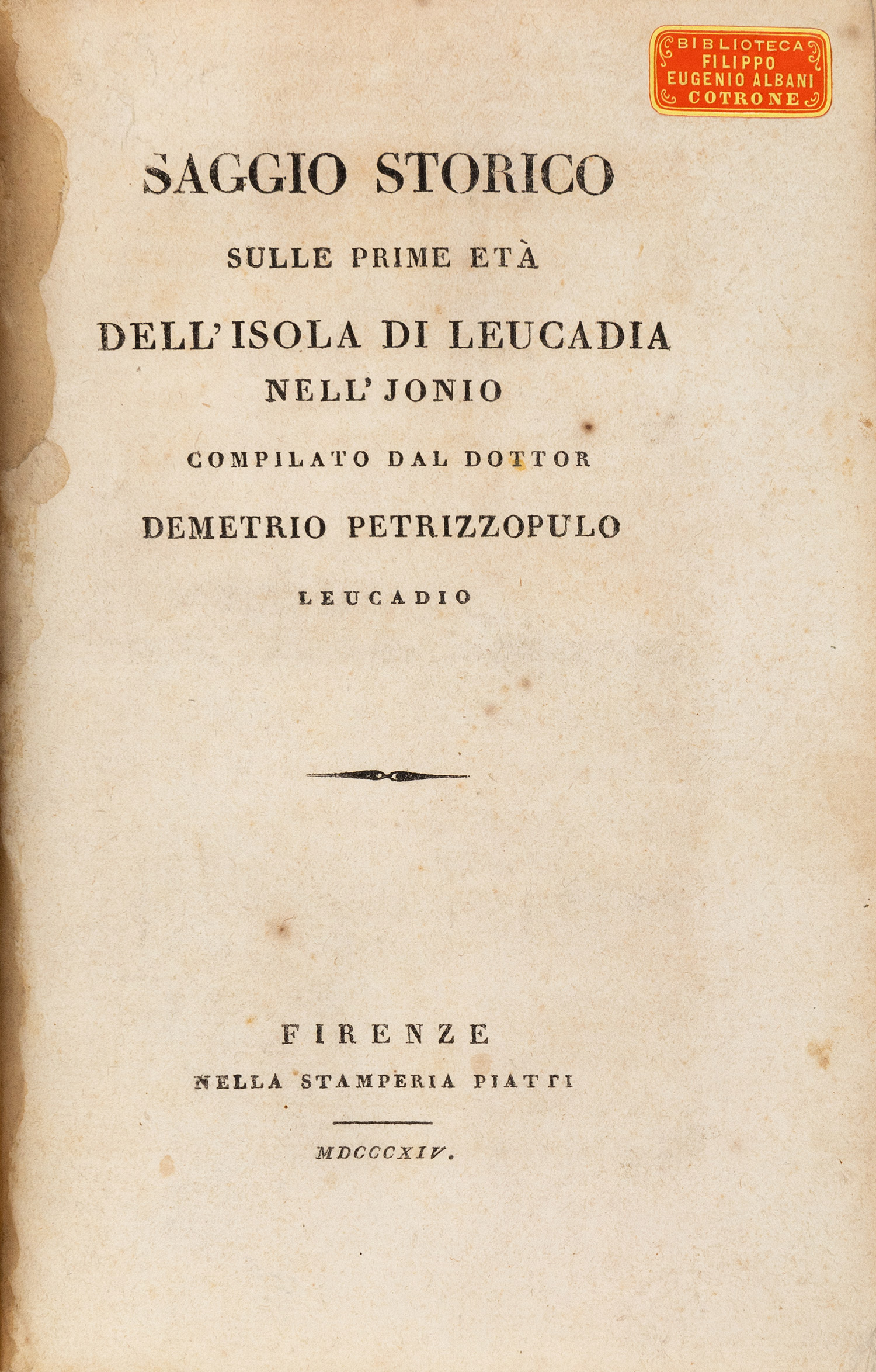 Saggio storico sulle prime età dell’isola di Leucadia nell’Jonio.