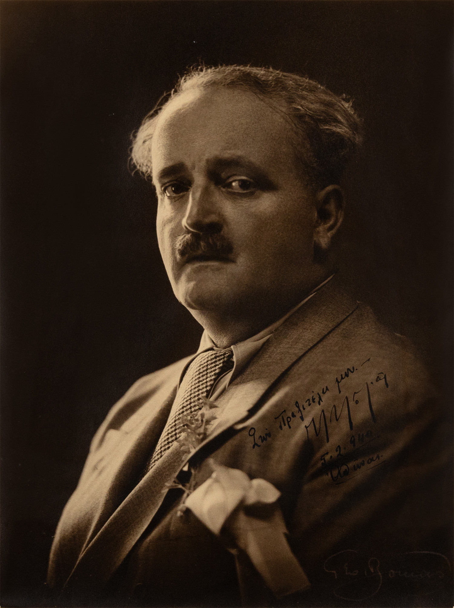 Με ιδιόχειρη αφιέρωση του Κοτζιά («Στόν Πραξιτέλη μου. / Κ. Κοτζιᾶς / 5.2.940 / Ἀθήναι.») και υπογραφή του φωτογράφου στην εικόνα («Geo. Boucas»), τύπωμα αργύρου, 395 x 295 mm. Σε κορνίζα.