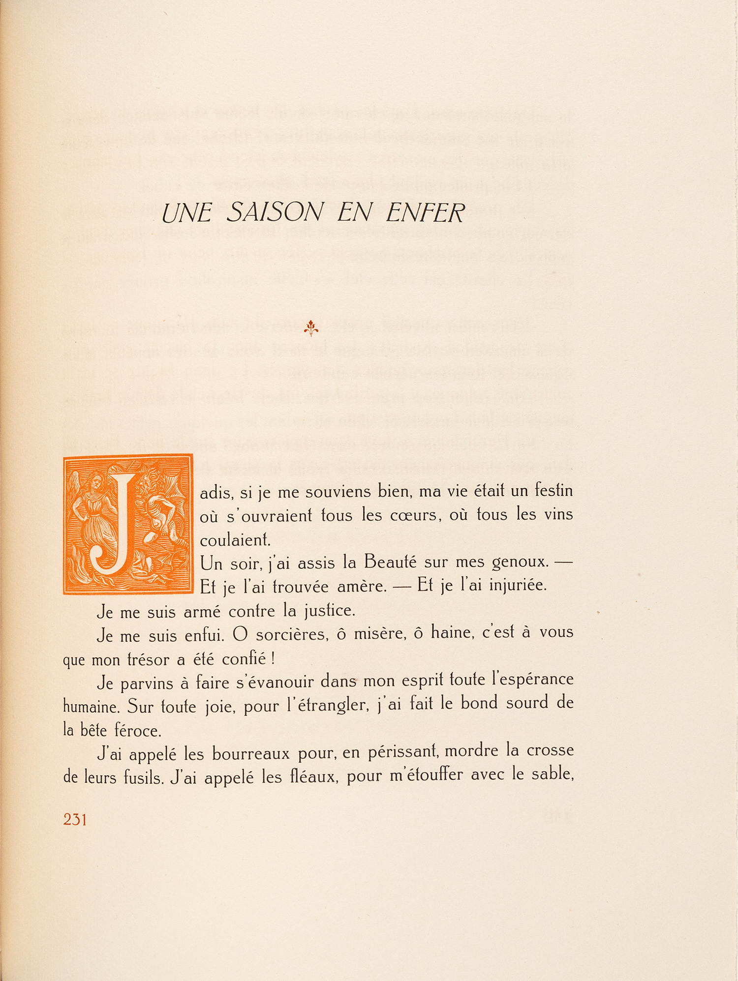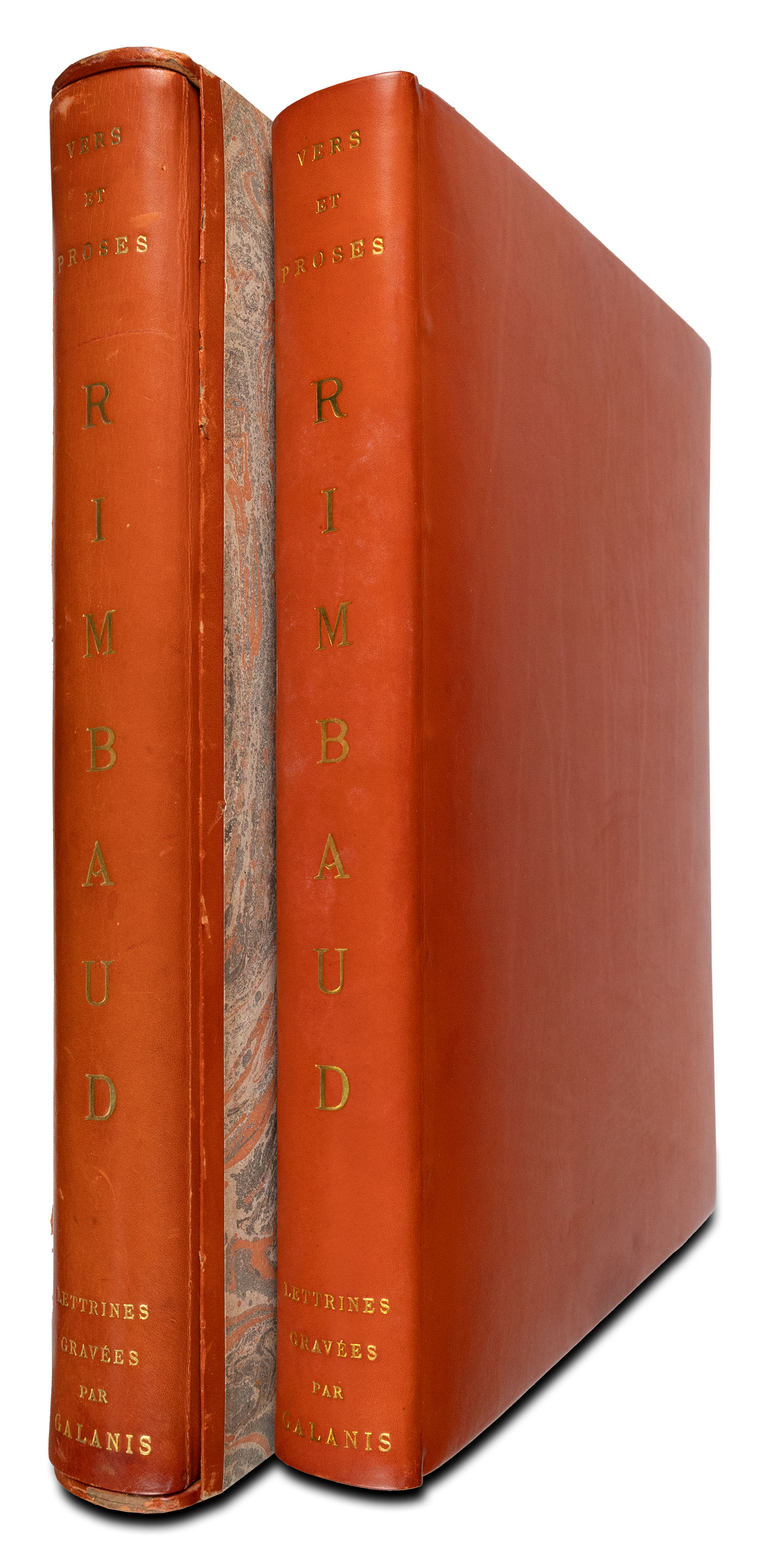 Τιμή εκτίμησης: € 800 - 1.2004ο (313 x 250 mm.), XV + 269 σ. Έκδοση περιορισμένη σε 120 αριθμημένα αντίτυπα, με 23 ξυλόγραφα αρχικά γράμματα του Δημητρίου ΓΑΛΑΝΗ. Πολυτελής βιβλιοδεσία με πορτοκαλί λείο δέρμα (έχουν διατηρηθεί τα αρχικά εξώφυλλα, τα εσωτερικά των καλυμμάτων και η εξωτερική πλευρά των ελεύθερων ακρόφυλλων επενδυμένα με ύφασμα, το εσωτερικό των ακρόφυλλων επενδυμένο με μαρμαρόκολλα, ο τίτλος με χρυσό στη ράχη, χρυσωμένη η πάνω ακμή, αξάκριστες οι υπόλοιπες), περικάλυμμα (με δερμάτινη ράχη) και θήκη με ομοιόμορφη διακόσμηση. Γαλάνης (Εικονογραφημένα) 1943/6.