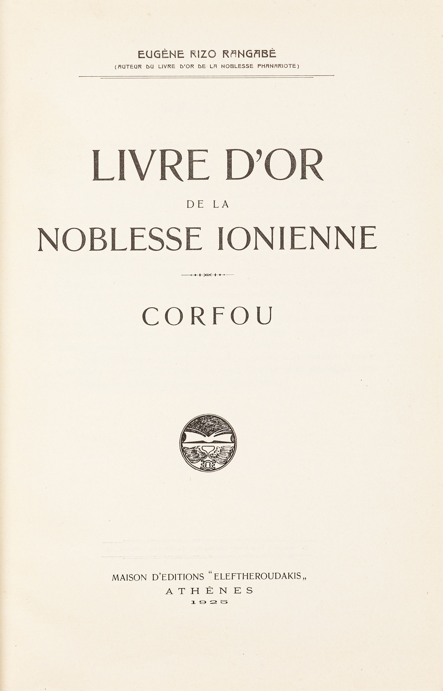 Livre d’or de la noblesse ionienne. Corfou, [–Céphalonie, –Zante].