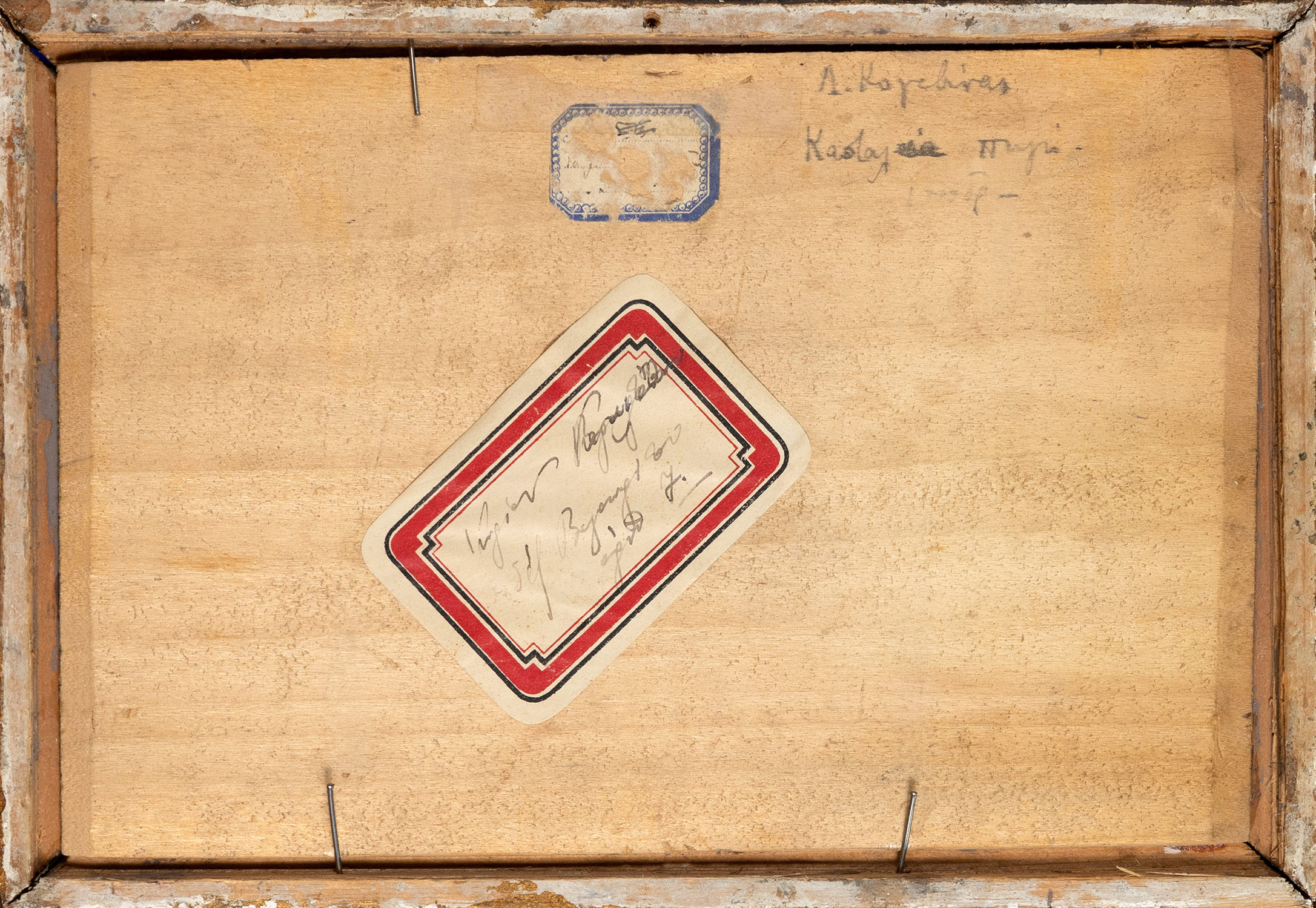 Λάδι σε κόντρα πλακέ, 158 x 240 mm. Υπογεγραμμένο κάτω αριστερά: «L. Kogévinas». Υπογραφή και τίτλος στην πίσω όψη. Σε κορνίζα.