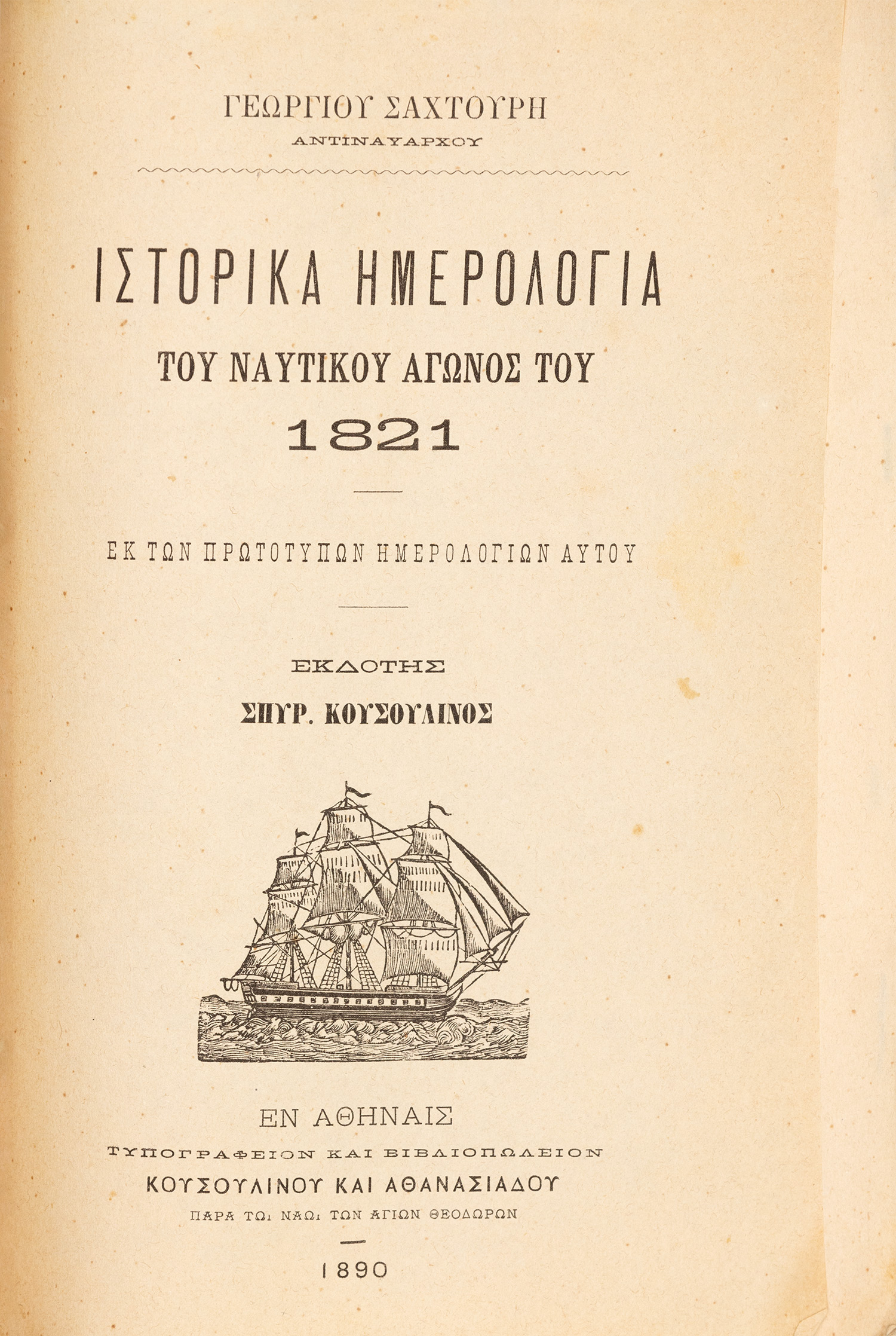 Ἱστορικὰ ἡμερολόγια τοῦ ναυτικοῦ ἀγῶνος τοῦ 1821. Ἐκ τῶν πρωτοτύπων ἡμερολογίων αὐτοῦ.