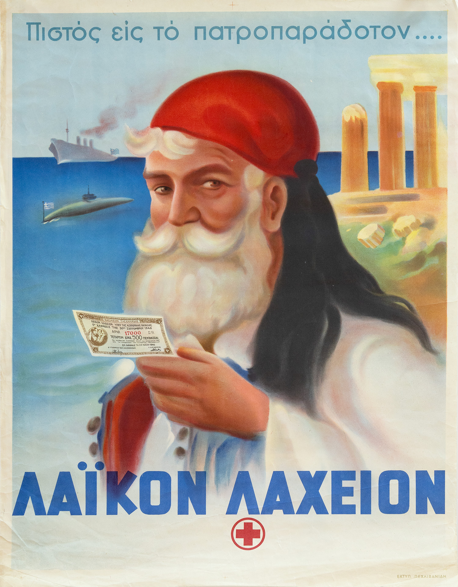 Πιστός εἰς τό πατροπαράδοτον... [κάτω:] Λαϊκόν λαχεῖον.