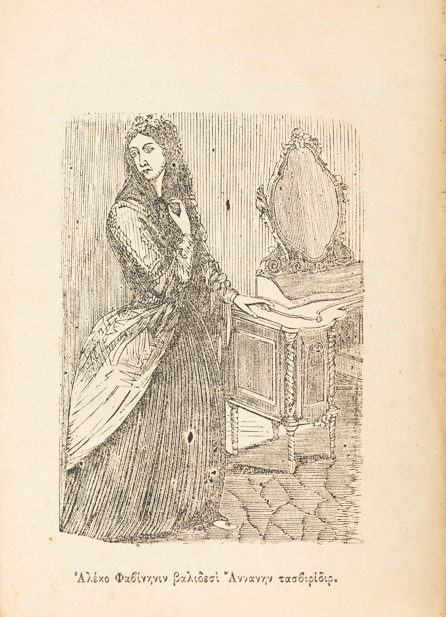 Τιμή εκτίμησης: € 150 - 2004 τόμοι δεμένοι σε έναν, 8ο, 292, (300-628), (636-900) και (908-1097) σ. (μικρό σχίσιμο στο εξωτερικό περιθώριο τριών φύλλων: σ. 759-764, χωρίς απώλεια κειμένου). Με 9 ολοσέλιδες ξυλογραφίες και έναν ξυλόγραφο πίνακα, κατάλογος συνδρομητών στο τέλος του Δ´ τόμου. Δερμάτινη ράχη της εποχής της έκδοσης (σχεδόν σπασμένη η κάτω σύνδεση, φθορές). Salaville & Dalleggio 175 («un véritable trésor philosophique»), Ηλιού & Πολέμη 1871.717 και 1872.692-4.