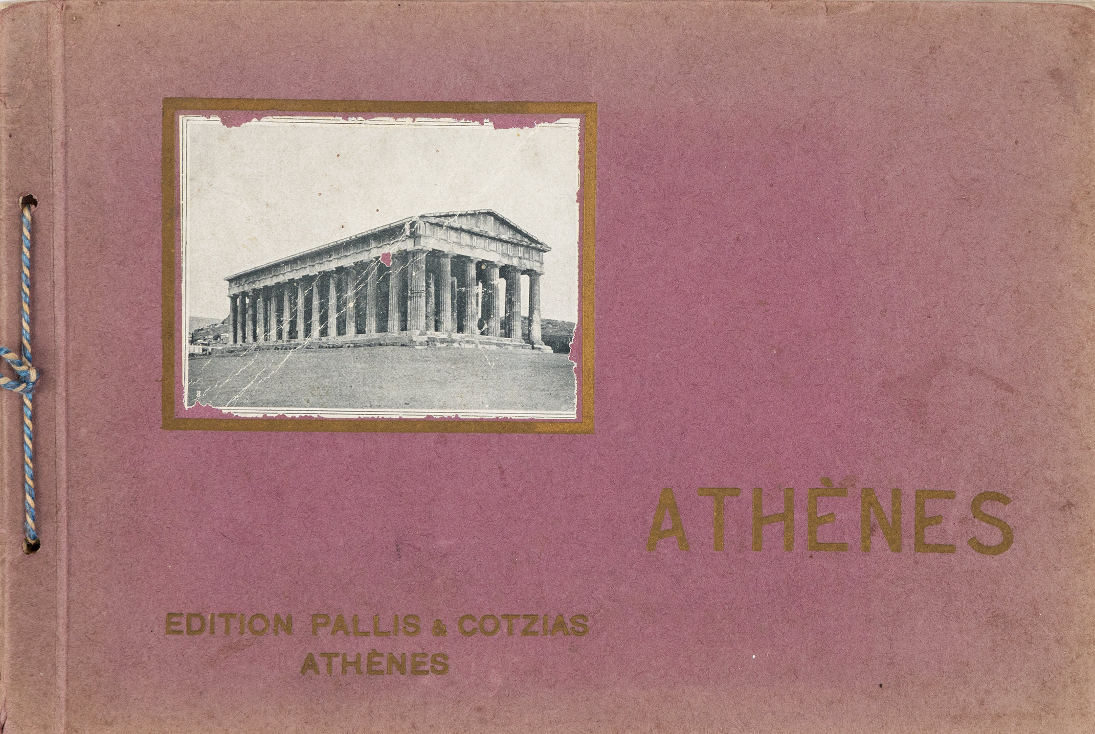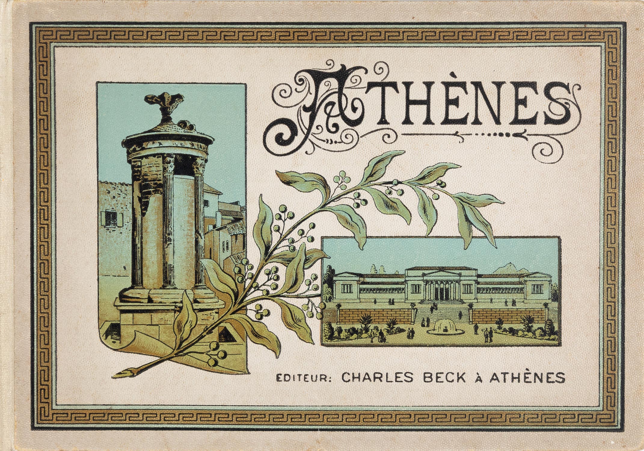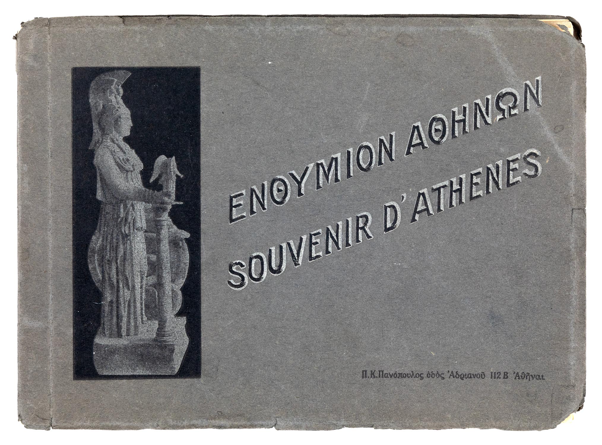 Τιμή εκτίμησης: € 200 - 300πλάγιο 8ο (124 x 177 mm.). Χωρίς ιδιαίτερο φύλλο τίτλου (τα στοιχεία της έκδοσης από το πάνω κάλυμμα), με μία βαθυτυπική αναπαραγωγή χρωμολιθογραφίας και 19 λιθογραφίες με μνημεία της Αθήνας σε μορφή ακορντεόν (σχισμένο στην τσάκιση ανάμεσα στην πρώτη και τη δεύτερη λιθογραφία), σύνθεση με τη βασιλική οικογένεια στη βαθυτυπική αναπαραγωγή, οι λιθογραφίες βασισμένες σε φωτογραφίες, λεζάντες στα ελληνικά και γαλλικά. Αρχικό εικονογραφημένο πανί (λίγο λερωμένο). [μαζί:] Athènes. Αθήνα, Πάλλης & Κοτζιάς, χ.χ. (αρχές 20ού αιώνα). • πλάγιο 8ο (158 x 230 mm.). Χωρίς ιδιαίτερο φύλλο τίτλου (τα στοιχεία της έκδοσης από το πάνω κάλυμμα), με 32 βαθυτυπικές αναπαραγωγές μνημείων, αρχαιοτήτων και ενδυμασιών (2 έγχρωμες), λεζάντες στα ελληνικά, γαλλικά και αγγλικά. Αρχικά εικονογραφημένα εξώφυλλα (βαθυτυπική αναπαραγωγή του ναού του Ηφαίστου επικολλημένη στο πάνω κάλυμμα, ξεθωριασμένα, μικρές φθορές). [μαζί:] Ἐνθύμιον Ἀθηνῶν. Αθήνα, Π. Κ. Πανόπουλος, χ.χ. (αρχές 20ού αιώνα). πλάγιο 8ο (130 x 175 mm.). Χωρίς ιδιαίτερο φύλλο τίτλου (τα στοιχεία της έκδοσης από το πάνω κάλυμμα), με 20 φωτοτυπίες (collotypes), λεζάντες στα ελληνικά, γαλλικά, γερμανικά και αγγλικά. Αρχικά εικονογραφημένα εξώφυλλα (μικρές φθορές). (3)